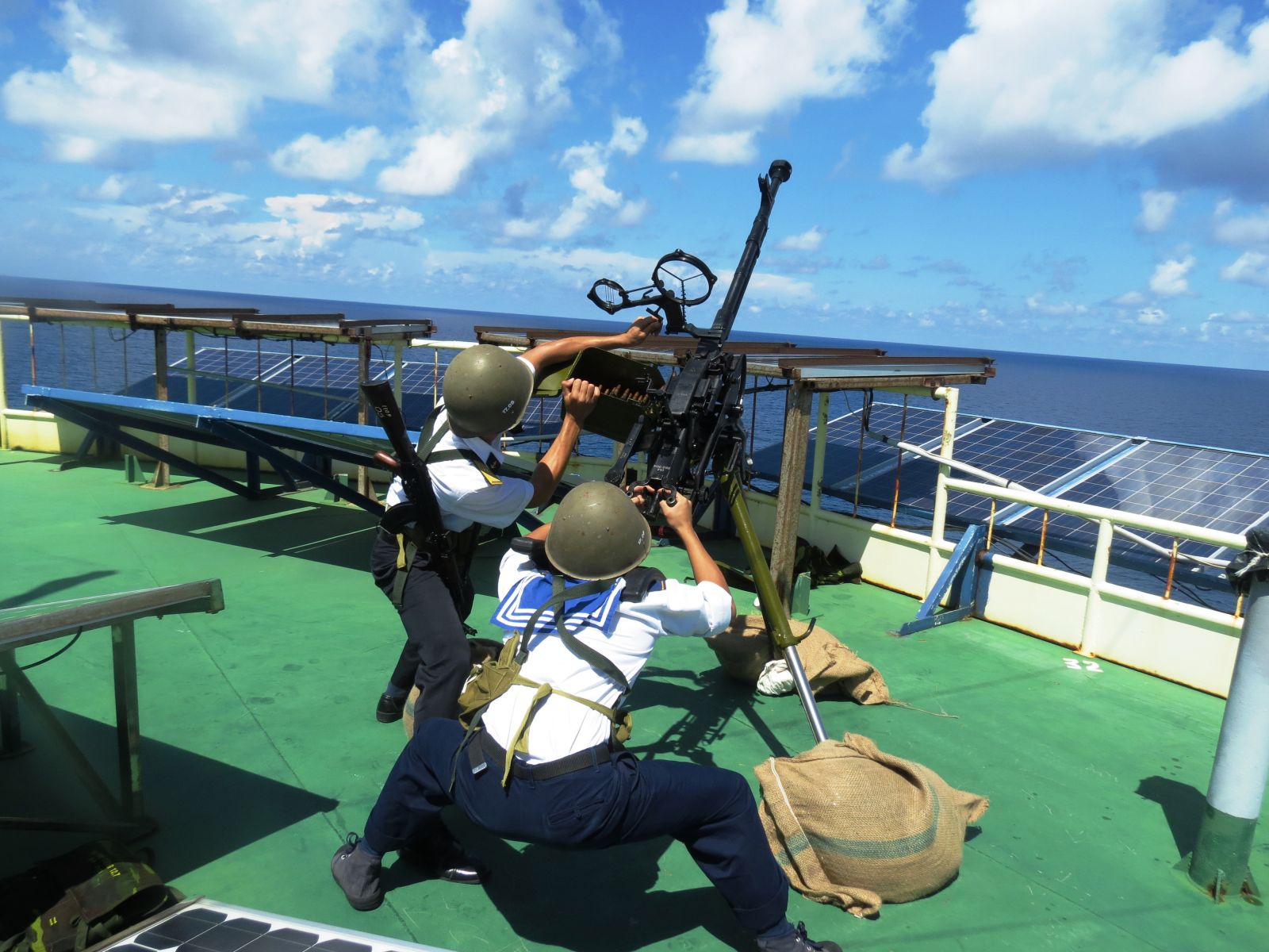 Mùa biển động, chuyển lương thực lên nhà giàn vô cùng gian khổ. Đồ khô bọc trong bao nylon kéo qua dây ròng rọc, người bám vào dây mồi bơi lên nhà giàn. Nhà giàn vẫn kiên cường, kiêu hãnh giữa đại dương.