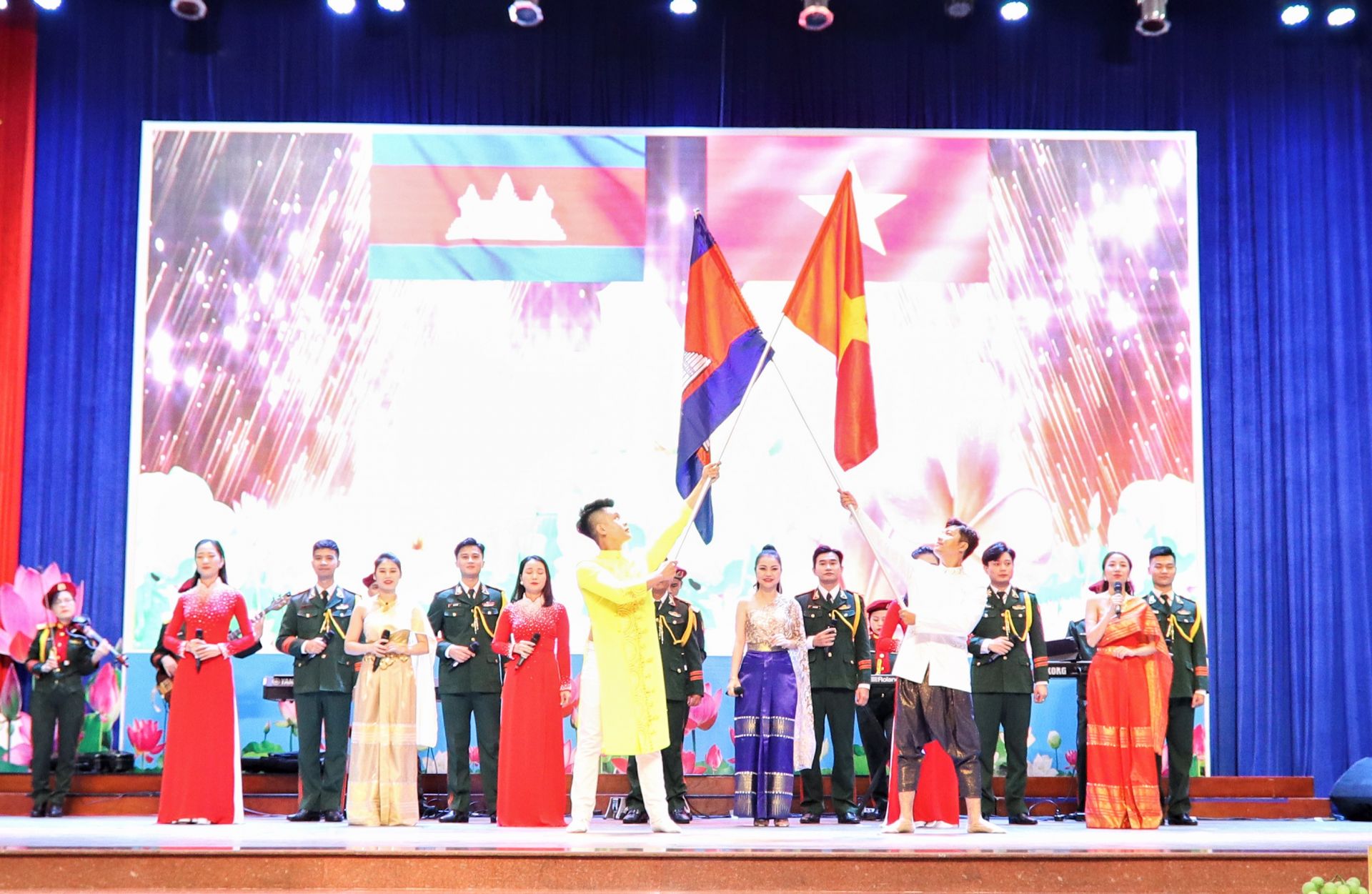 Chương trình giao lưu văn hoá, văn nghệ đặc sắc do các nghệ sĩ, diễn viên hai nước Việt Nam, Campuchia biểu diễn tại buổi họp mặt giữa Tây Ninh với 4 tỉnh Svay Rieng, Prey Veng, Tboung Khmum, Kampong Cham thuộc Vương quốc Campuchia. Ảnh: Khánh Duy