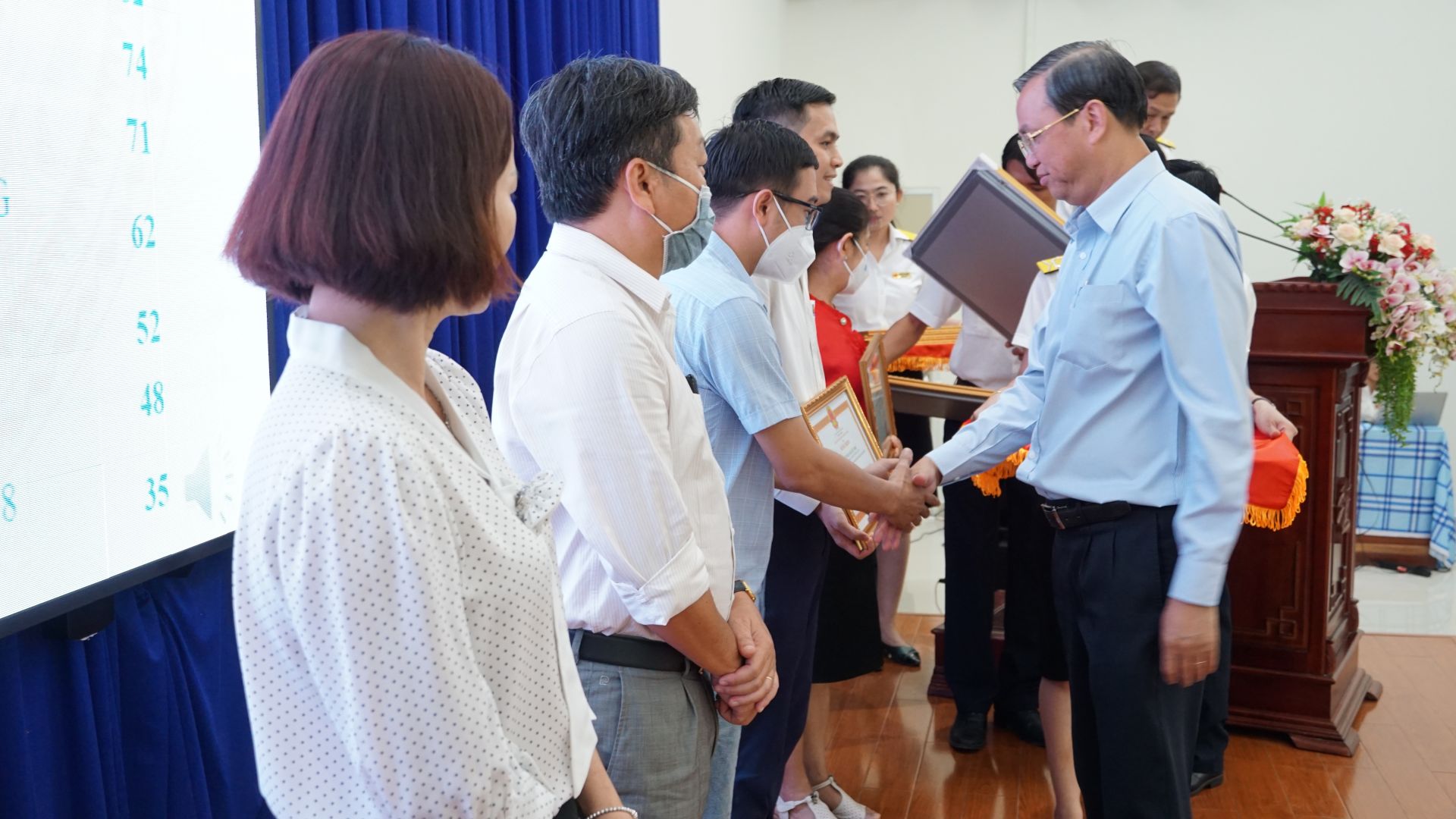 Ông Dương Văn Thắng– Phó Chủ tịch UBND tỉnh trao Bằng khen của Chủ tịch tỉnh cho các tập thể thực hiện tốt chính sách, pháp luật thuế. Ảnh: Thanh Nhi