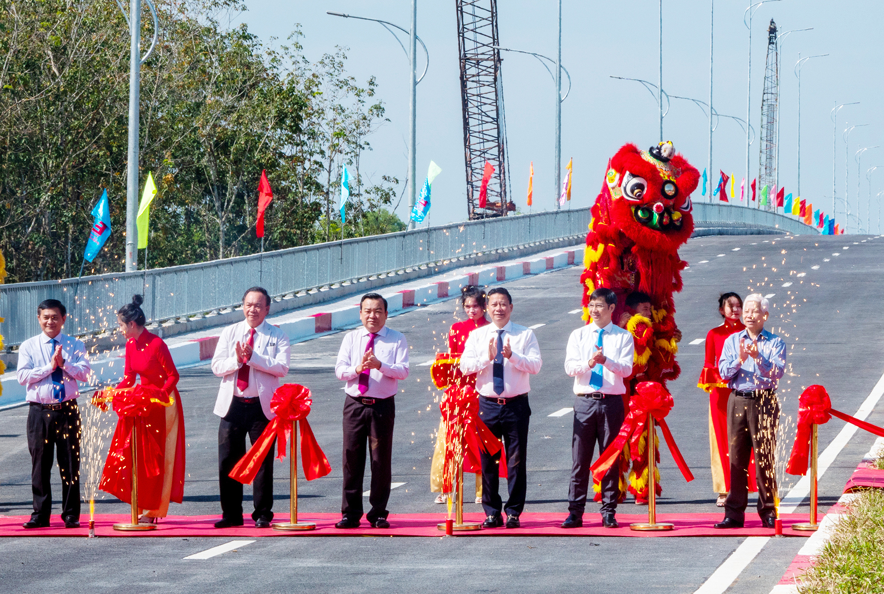 Lãnh đạo tỉnh cắt băng khánh thành cầu kết nối hai tỉnh Tây Ninh – Bình Dương. Ảnh: Đỗ Thành Nhân