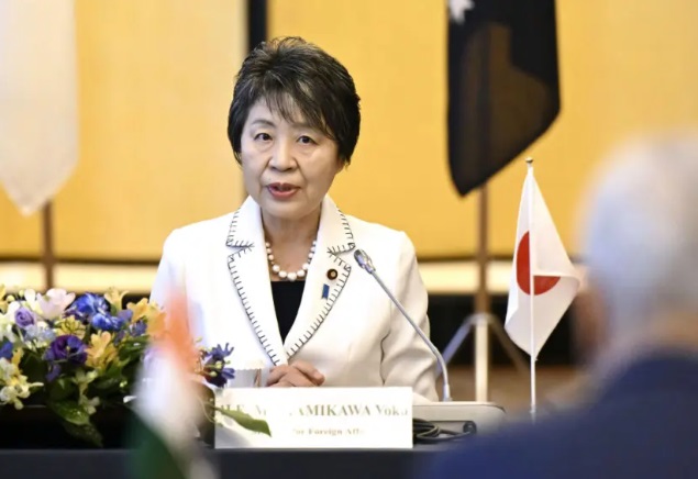 Ngoại trưởng Nhật Bản Yoko Kamikawa phát biểu tại cuộc gặp với các ngoại trưởng Mỹ, Australia và Ấn Độ tại Tokyo ngày 29/7/2024. Ảnh: Kyodo News