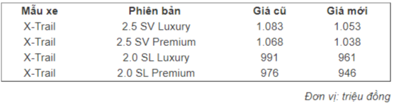Tuần cuối của năm 2018, Nissan Việt Nam đưa ra mức giảm 30 triệu đồng cho bốn phiên bản X-Trail V-series lắp động cơ 2 lít và 2,5 lít, về mức 946-1.053 triệu đồng. Mức giá này của X-Trail nhỉnh hơn đối thủ Mazda CX-5 (899-1.019) cùng lắp ráp trong nước và thấp hơn so với Honda CR-V (973-1.083) nhập khẩu Thái Lan.