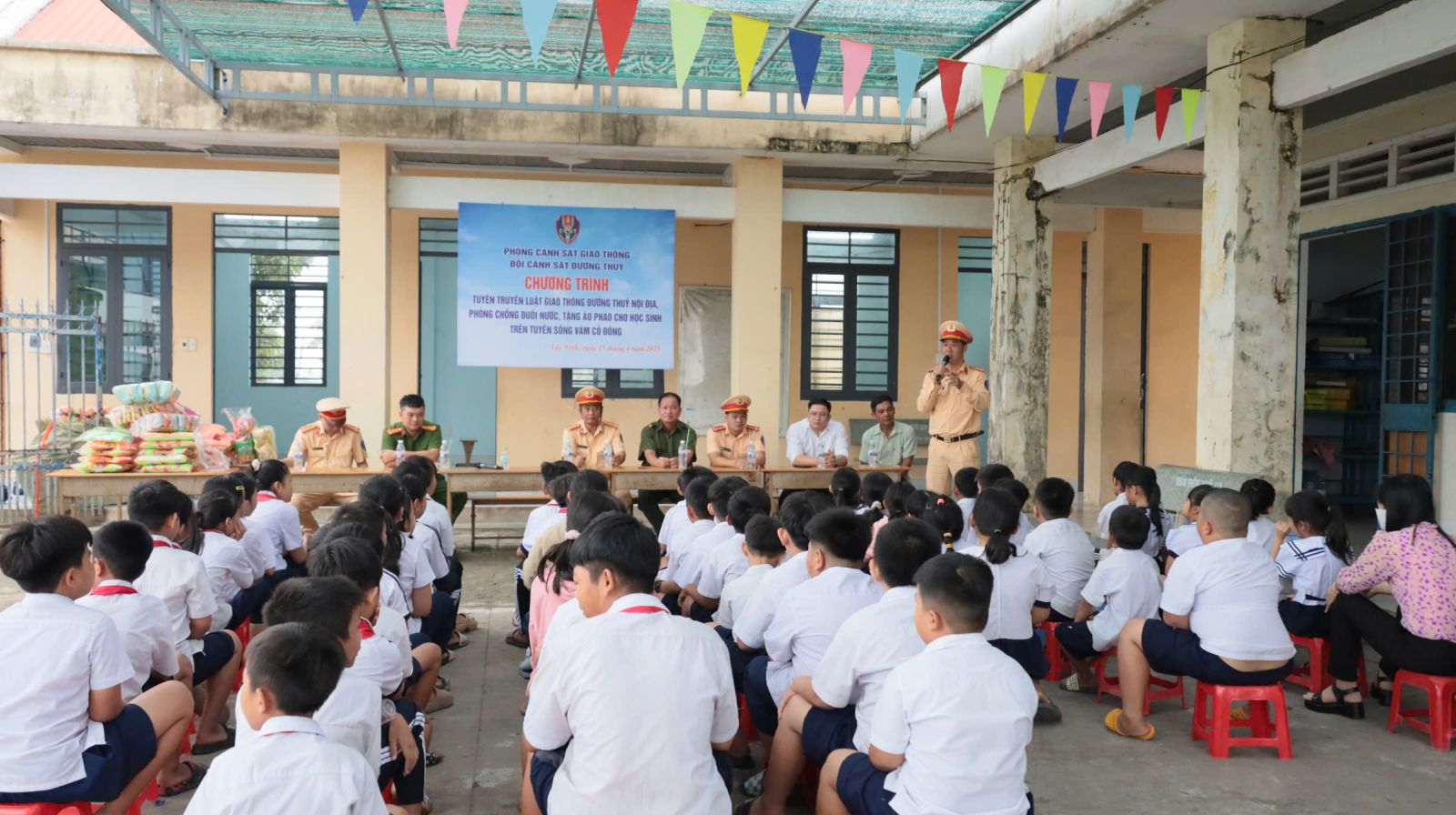 Bên cạnh đó, Đội Cảnh sát đường thuỷ, Phòng Cảnh sát giao thông tiếp tục phối hợp với các cơ quan, chính quyền địa phương, nhà trường tổ chức tuyên truyền Luật Giao thông đường thuỷ nội địa cho người dân sống ven sông, học sinh nắm và thực hiện đúng quy định.