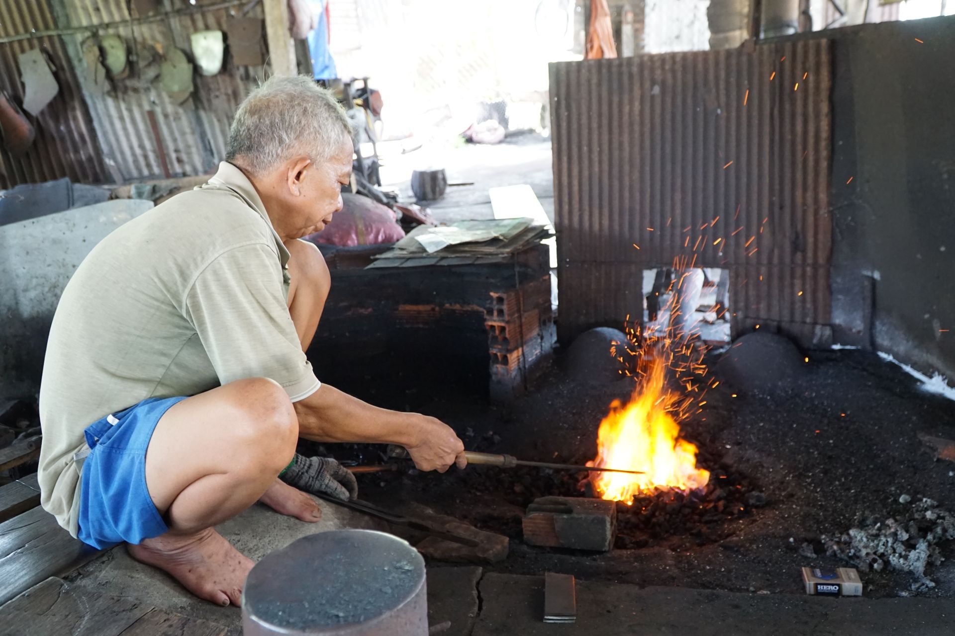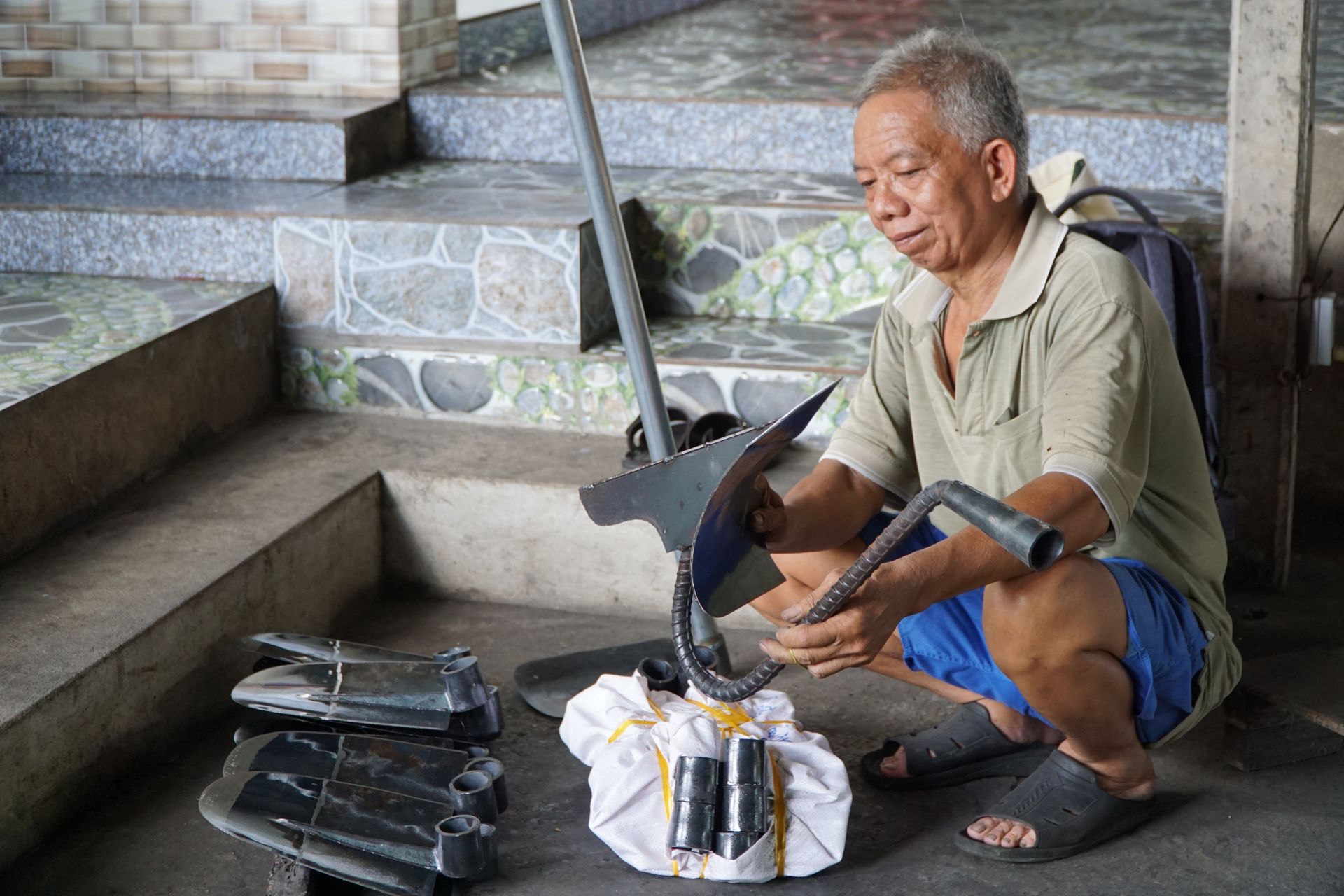Lò rèn của ông chuyên rèn vật dụng làm nông nghiệp như cuốc, cày… có nhiều công đoạn vẫn phải dùng sức người là chính. Lâu năm trong nghề, ông Đạm có nhiều mối trong và ngoài tỉnh, nhưng cái khó lớn nhất hiện nay là thiếu vốn.