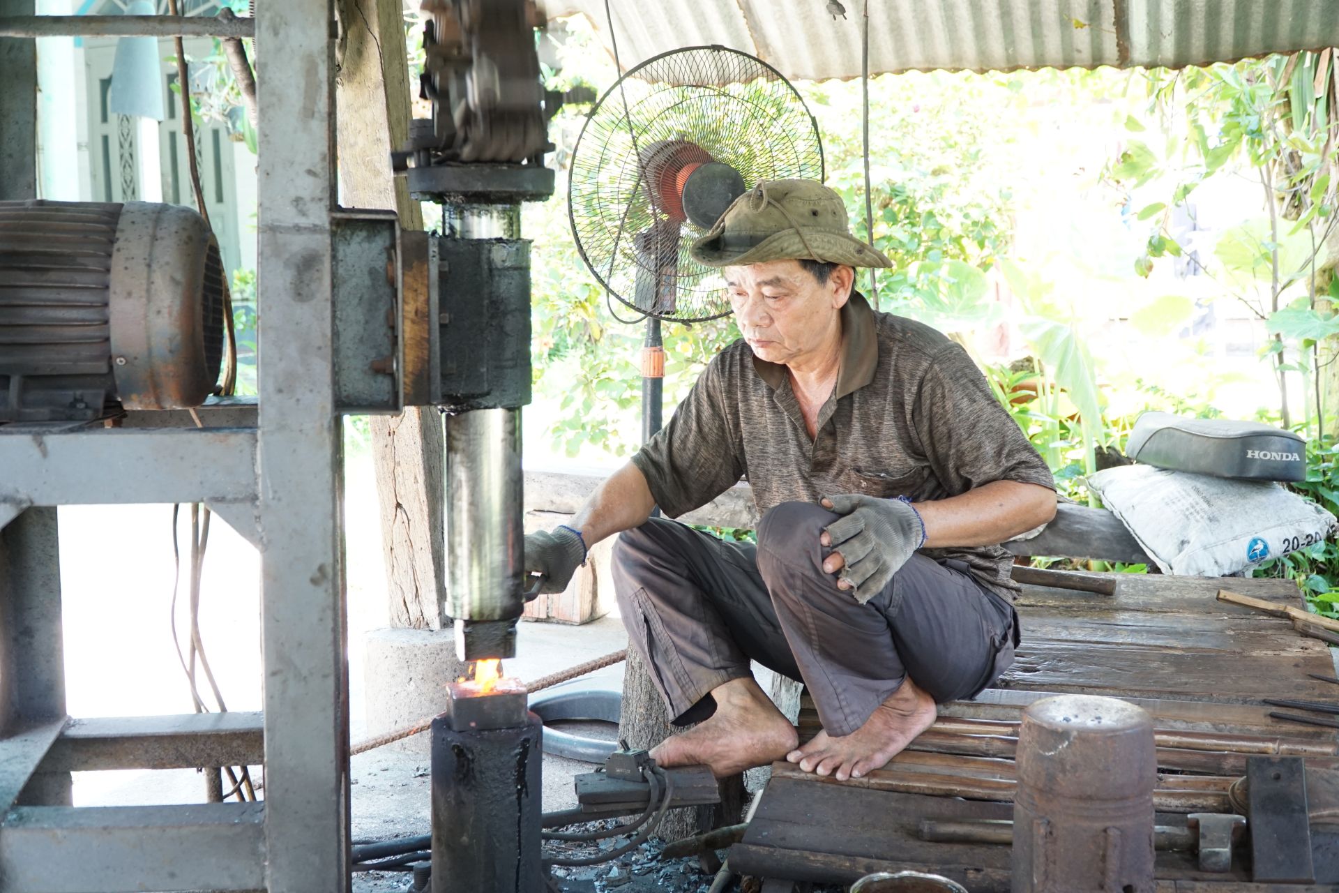 Lò rèn của ông Mót được hiện đại hoá giúp làm việc nhàn hơn.