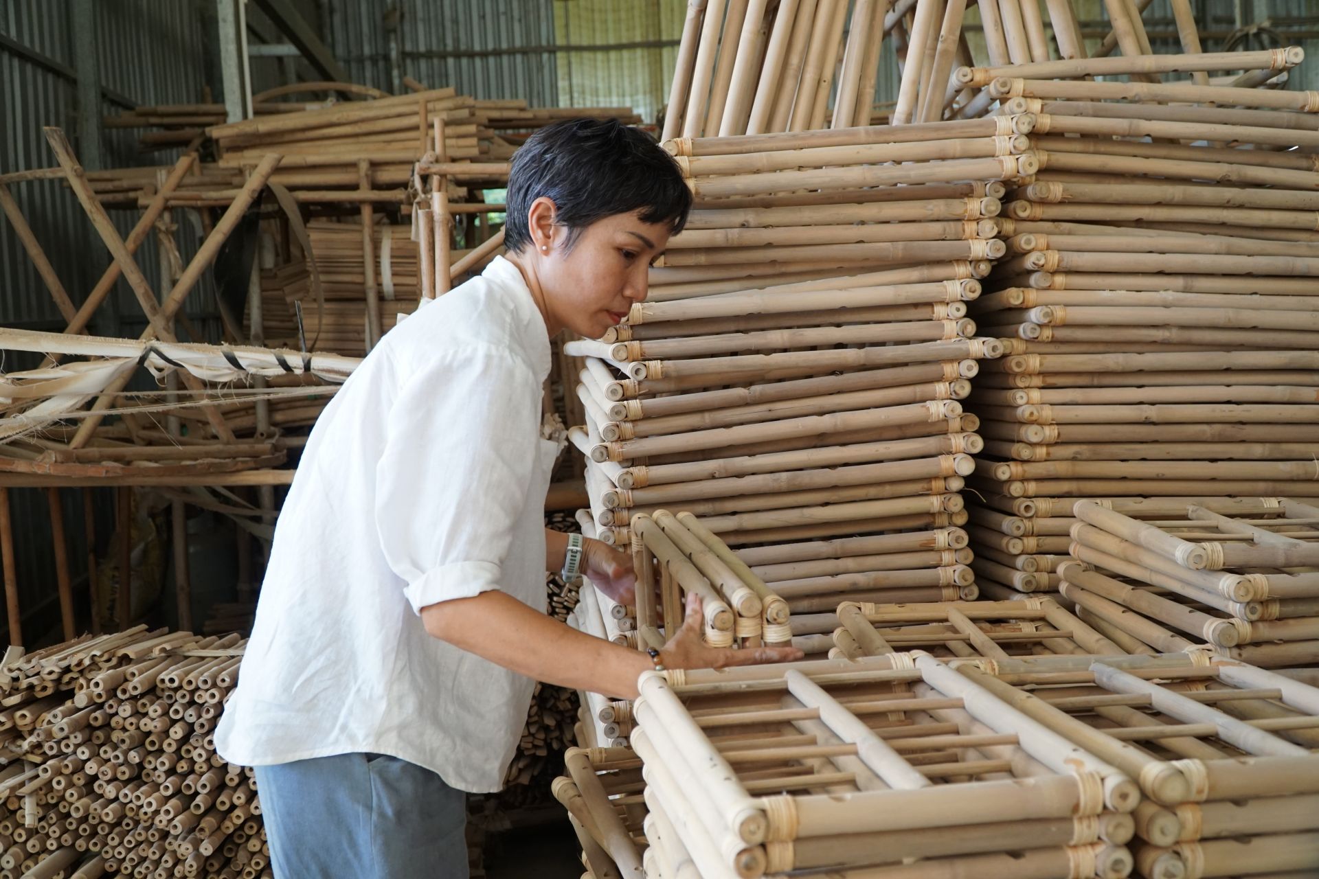 Chị Anh Thư, nhiều năm tâm huyết với nghề mây tre.