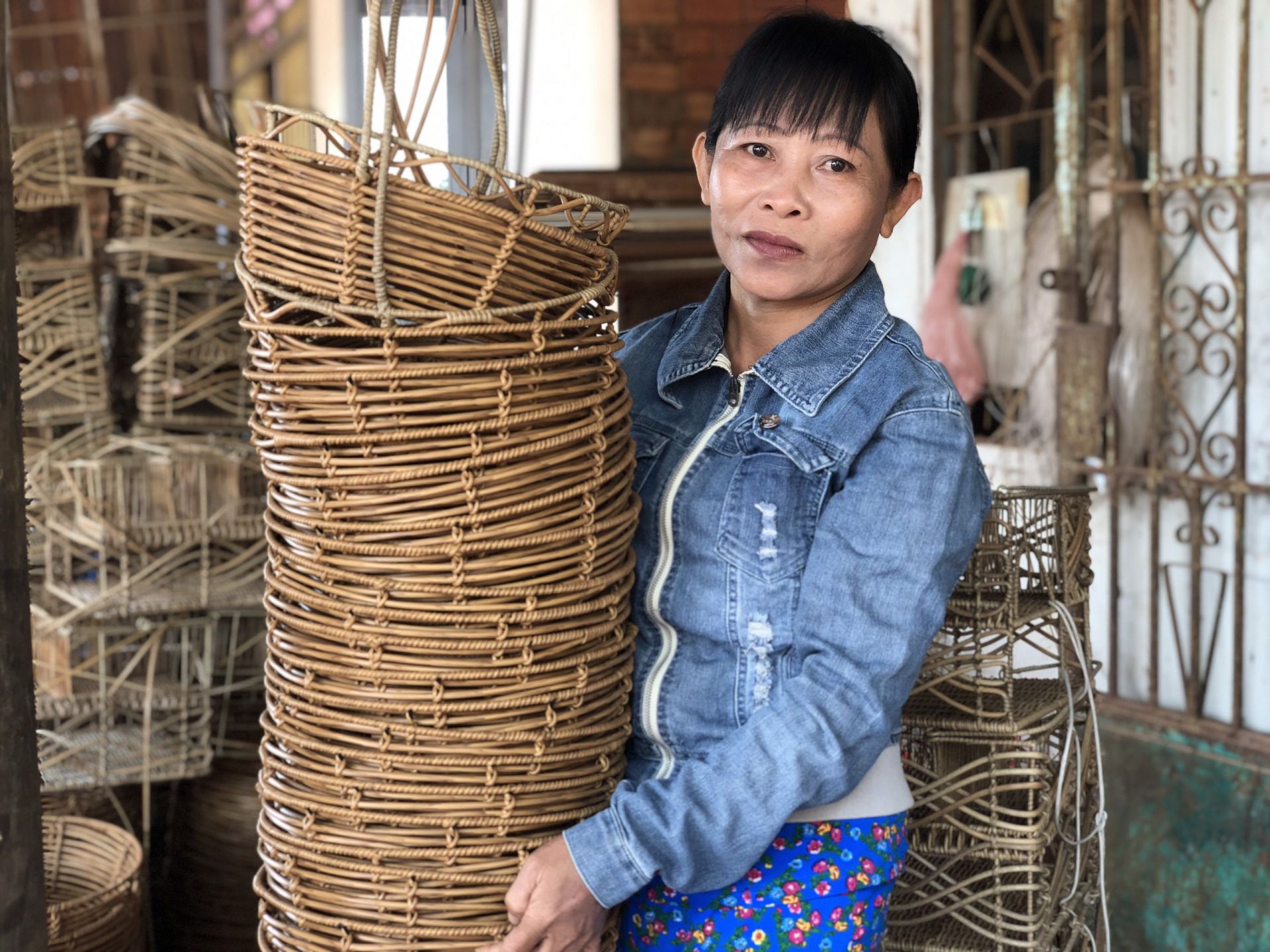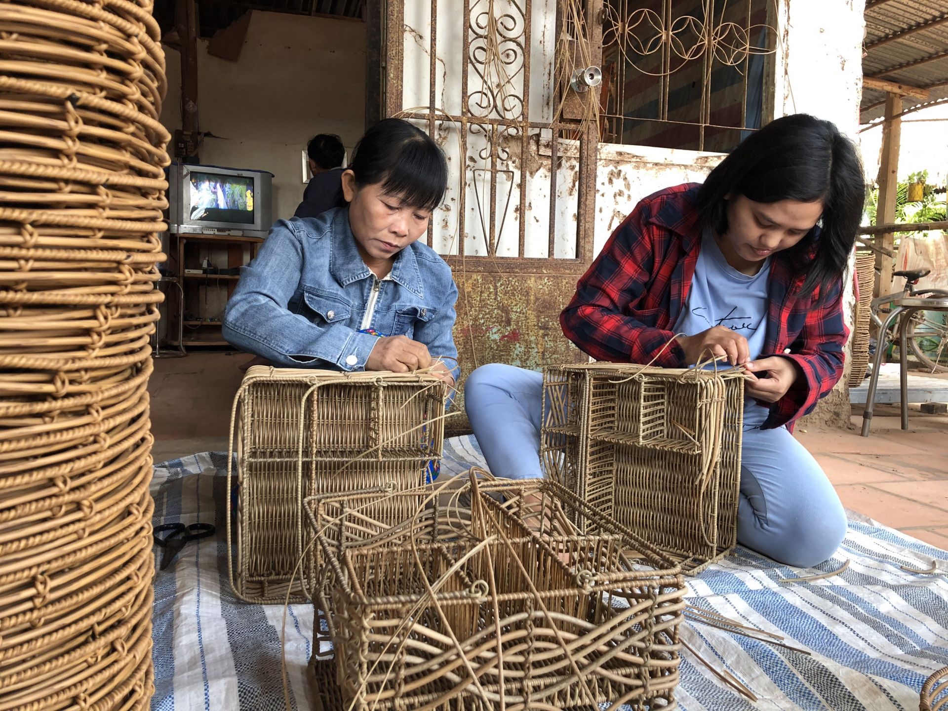 Mọi người làm thành thạo nhiều mặt hàng như rổ, giỏ, xe đẩy em bé…