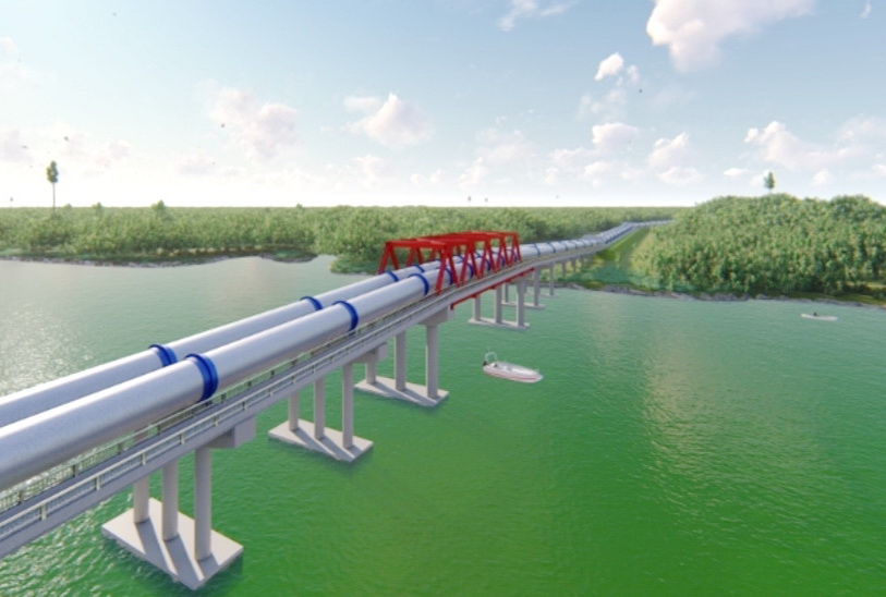 Đồ hoạ hạng mục công trình đưa nước vượt sông Vàm Cỏ Đông.
