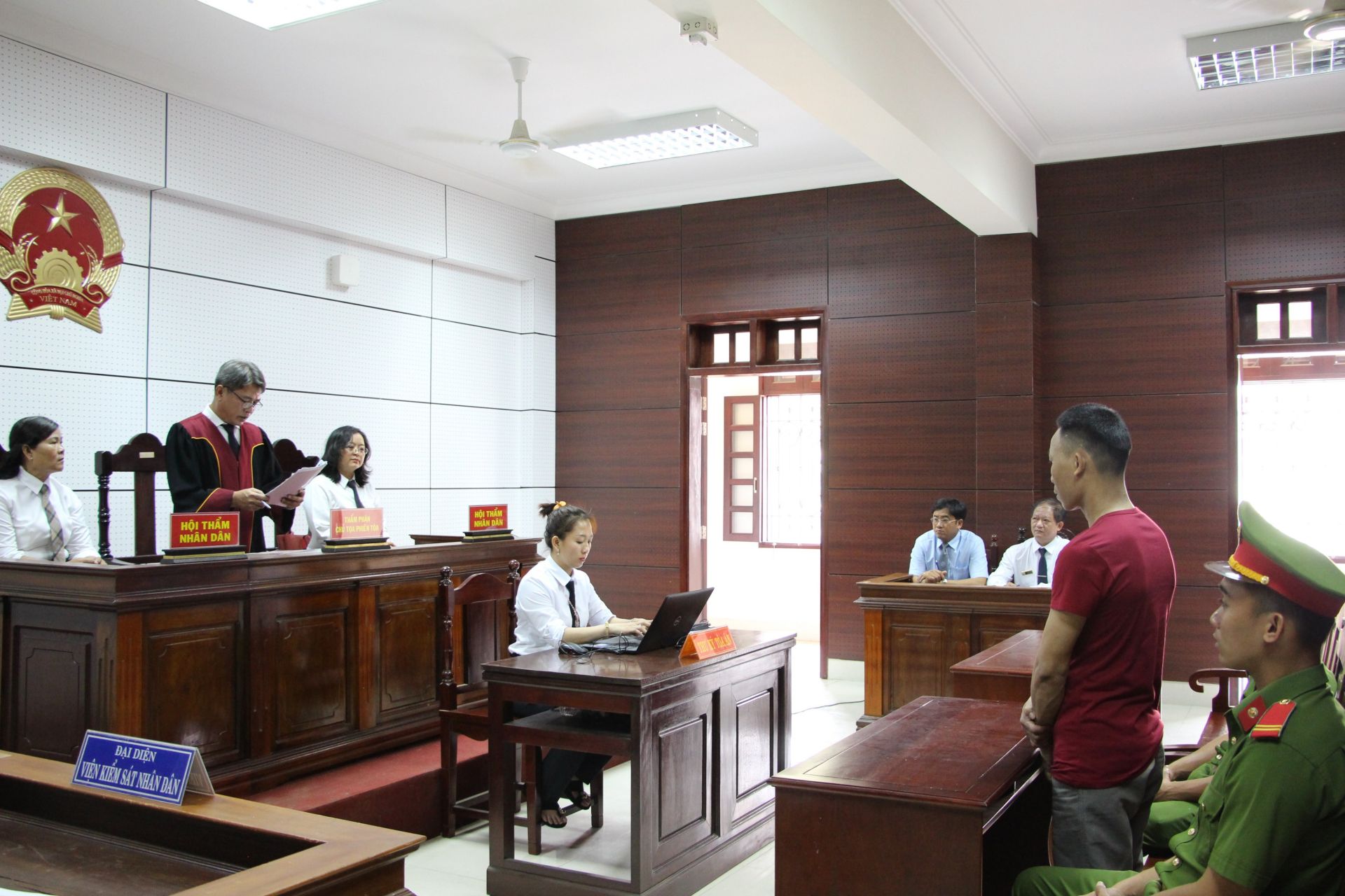 Trợ giúp viên pháp lý tham gia bảo vệ quyền và lợi ích hợp pháp cho bị hại tại một phiên tòa (ảnh chụp trước ngày 1.7.2021)