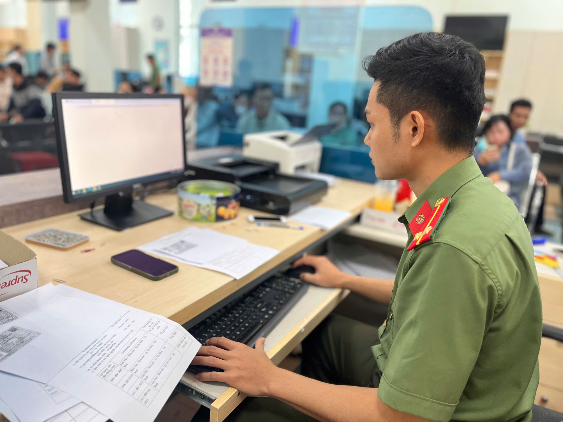 Trung uý Mai Thanh Chiêu Anh- cán bộ Công an chia sẻ, ngày đầu tiên thực hiện nhiệm vụ cấp phiếu lý lịch tư pháp nên ban đầu còn khá bỡ ngỡ và áp lực. Tuy nhiên, sau khi tiếp cận công việc, anh đã dần quen với quy trình thực hiện. May mắn, người dân cũng thông cảm nên anh tự tin và cố gắng nhiều hơn để giải quyết hồ sơ nhanh gọn cho mọi người.
