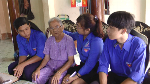 Các bạn đoàn viên thanh niên xã Bàu Năng thăm mẹ Mĩa.