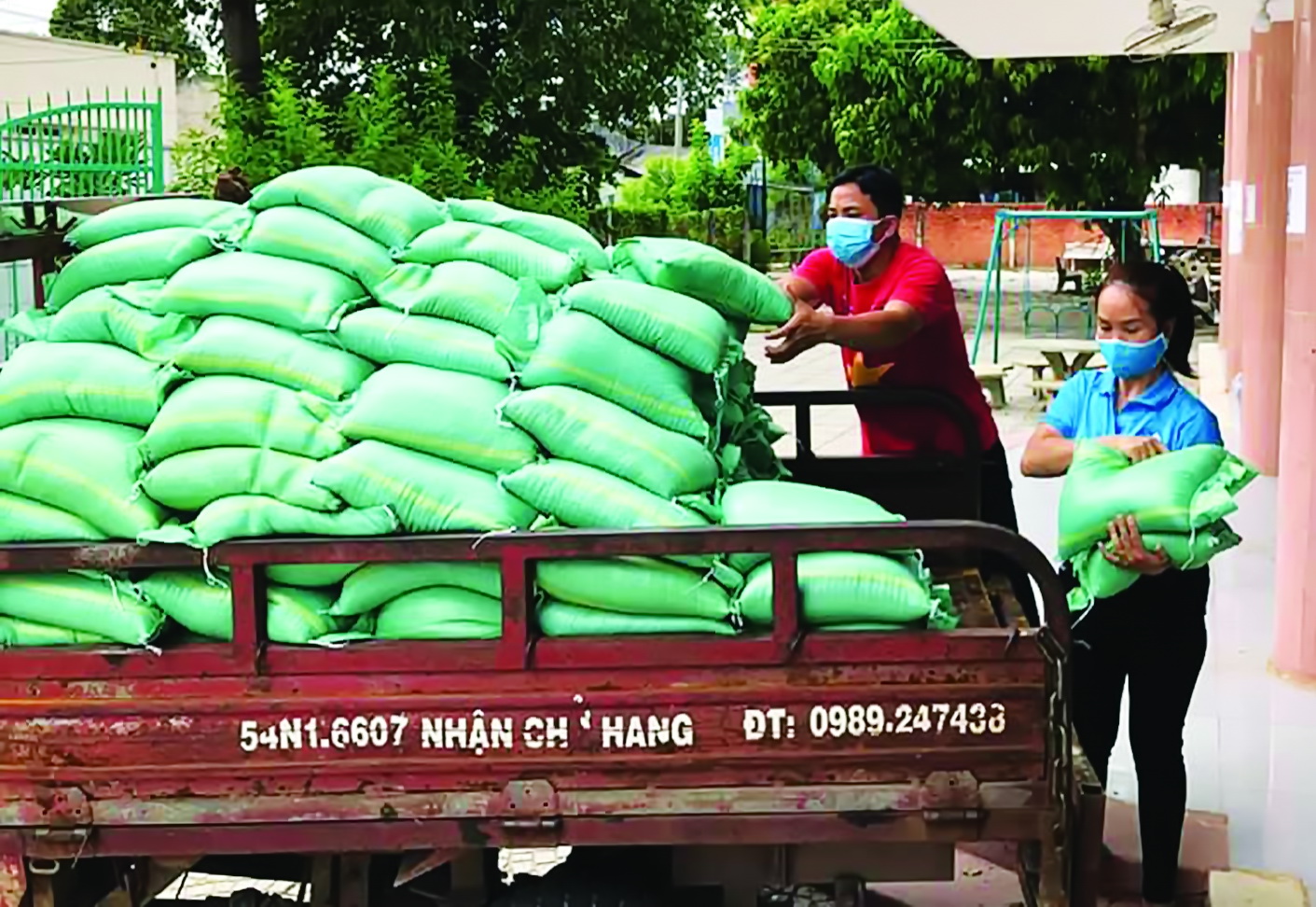 Huyện đoàn Dương Minh Châu nhận gạo tài trợ từ các mạnh thường quân.