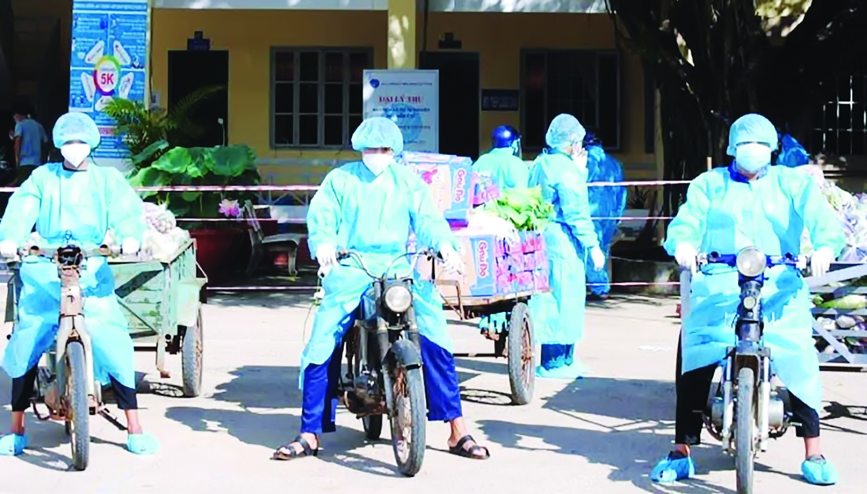 Trong khi đó, các bạn đoàn viên, thanh niên dùng xe tải, xe lôi chở lương thực, thực phẩm cho người dân khu cách ly, bị phong toả; những chiếc xe loa của Trung tâm Văn hoá, Thể thao và Truyền thanh huyện, các xã, thị trấn chạy trên đường tuyên truyền, kêu gọi người dân thực hiện “5K”, đặc biệt là hạn chế ra đường; các tổ tuần tra của Công an huyện kiểm tra các trường hợp ra đường không lý do chính đáng.
