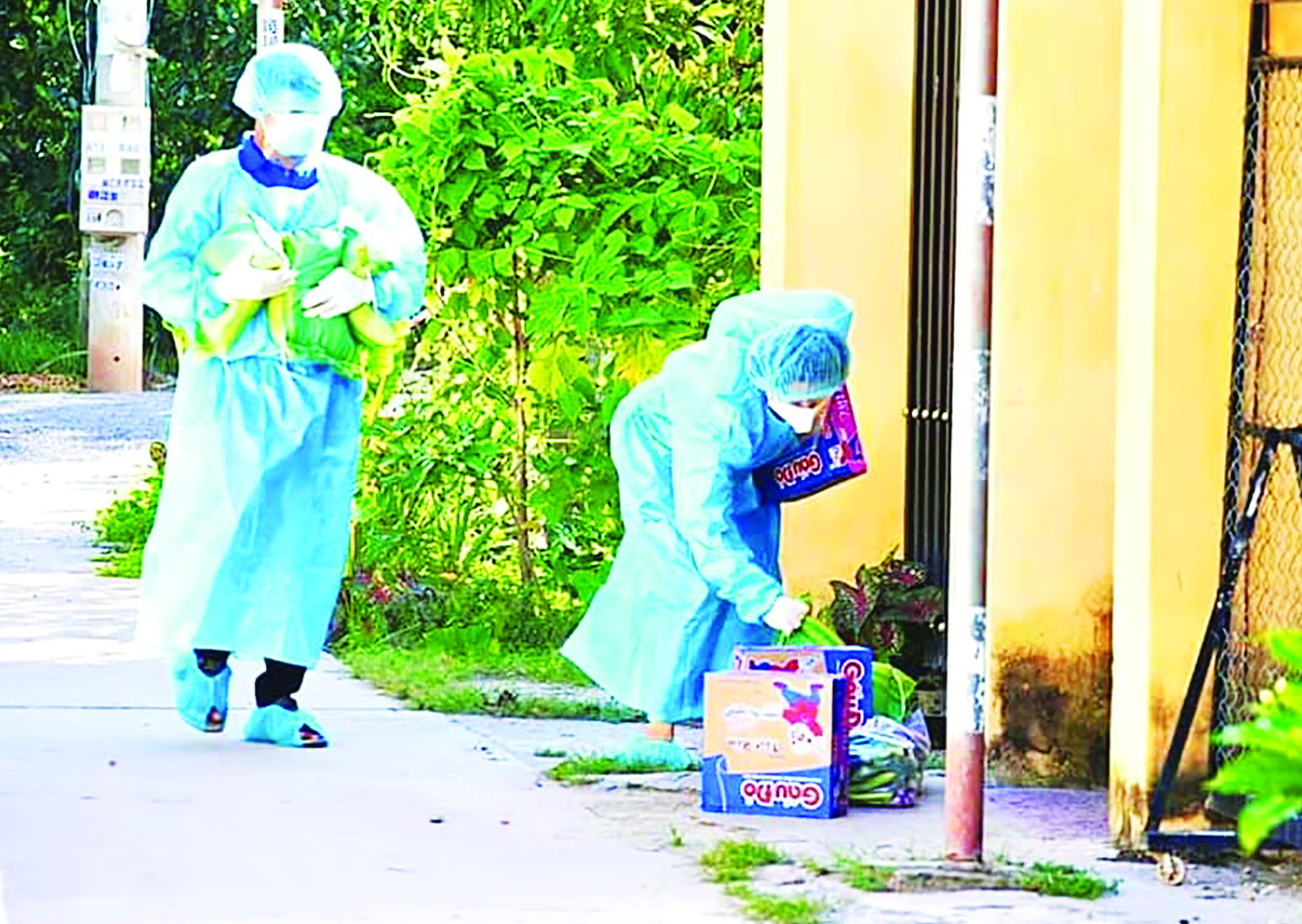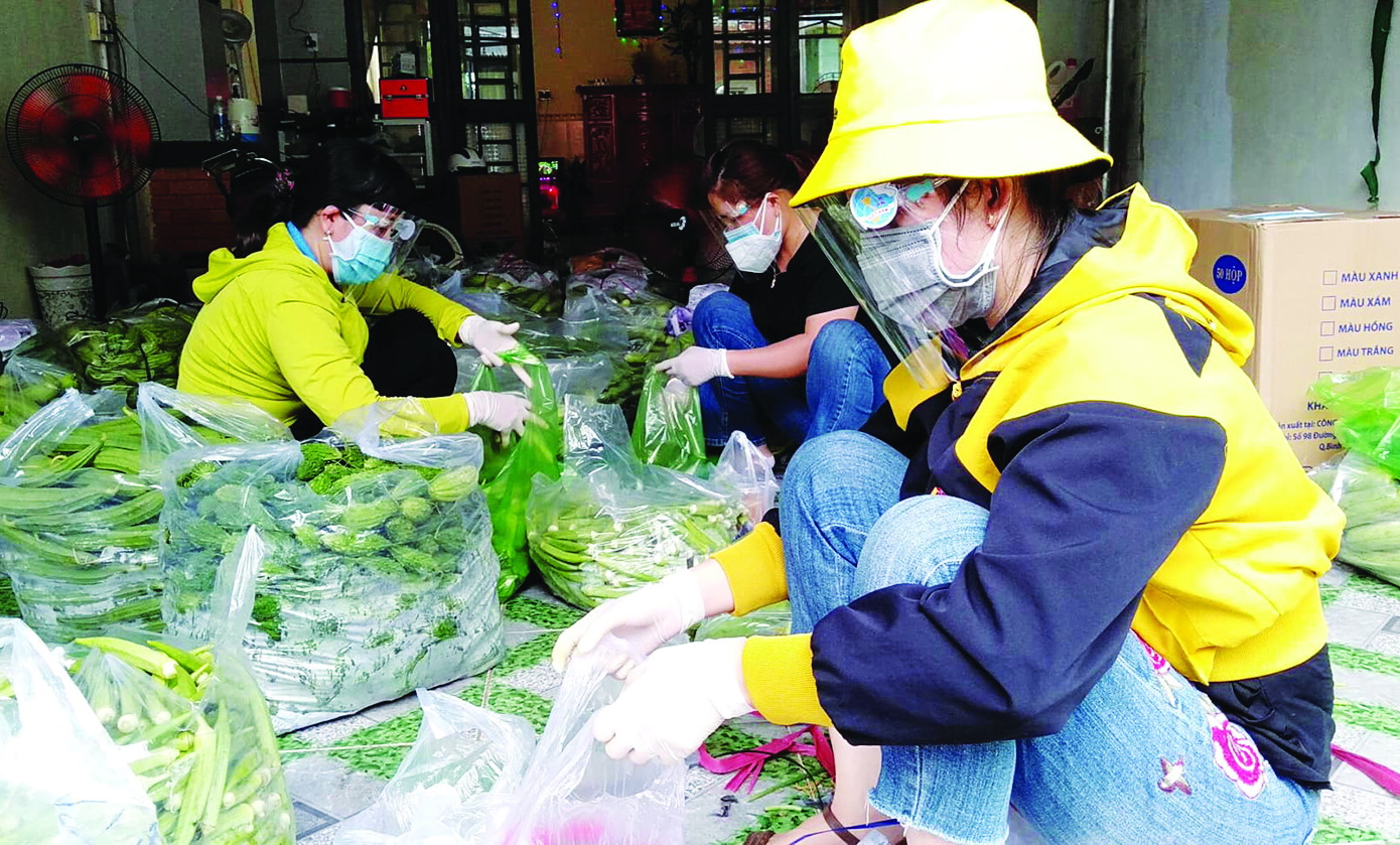 Hội viên Hội Liên hiệp Phụ nữ huyện chuẩn bị thực phẩm xanh cho khu cách ly, nơi phong toả.