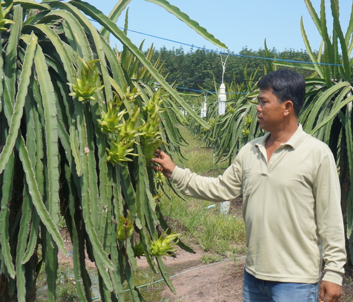 Anh Nguyễn Trí Hưng, 39 tuổi, ngụ ấp 4, xã Bàu Đồn, huyện Gò Dầu bên vườn thanh long.
