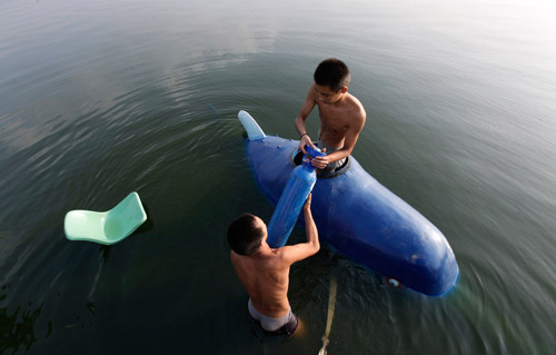 Ngày 29.8, anh Trương Ngũ Nhất, một nông dân ở Hồ Bắc, Trung Quốc đã đưa chiếc tàu lặn tự chế thử nghiệm trên sông Vũ Hán.