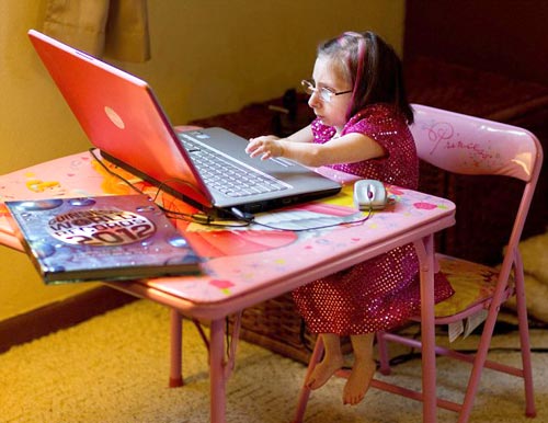 Cô gái 22 tuổi mặc bộ váy màu hồng ngồi chới với trên chiếc ghế công chúa dành cho trẻ em, mắt "dán" vào màn hình máy tính còn bàn tay di chuột thoăn thoắt. Bridgette Jordan ở làng Sandoval, bang Illinois, Mỹ, vừa được sách kỷ lục Guinness công nhận là người thấp nhất thế giới với chiều cao 69 cm.