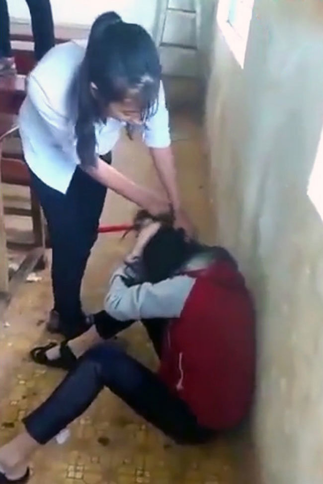 Trước đó, trên mạng xã hội xuất hiện một đoạn clip dài gần 5 phút ghi lại cảnh 3 nữ sinh đánh một nữ sinh khác. Mặc dù nữ sinh bị đánh liên tục xin lỗi, van xin nhưng vẫn bị túm tóc đấm đá liên tiếp vào mặt, đạp vào đầu.