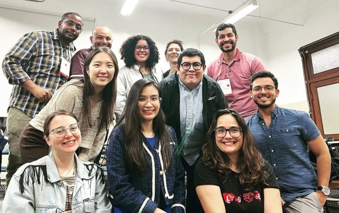TS.BS Nguyễn Thị Phương Thảo (hàng đầu, thứ hai từ trái sang) cùng các cộng sự tại khóa học nâng cao về ứng phó dịch bệnh tại Đại học Y khoa São Paulo, Brazil. Ảnh: NVCC