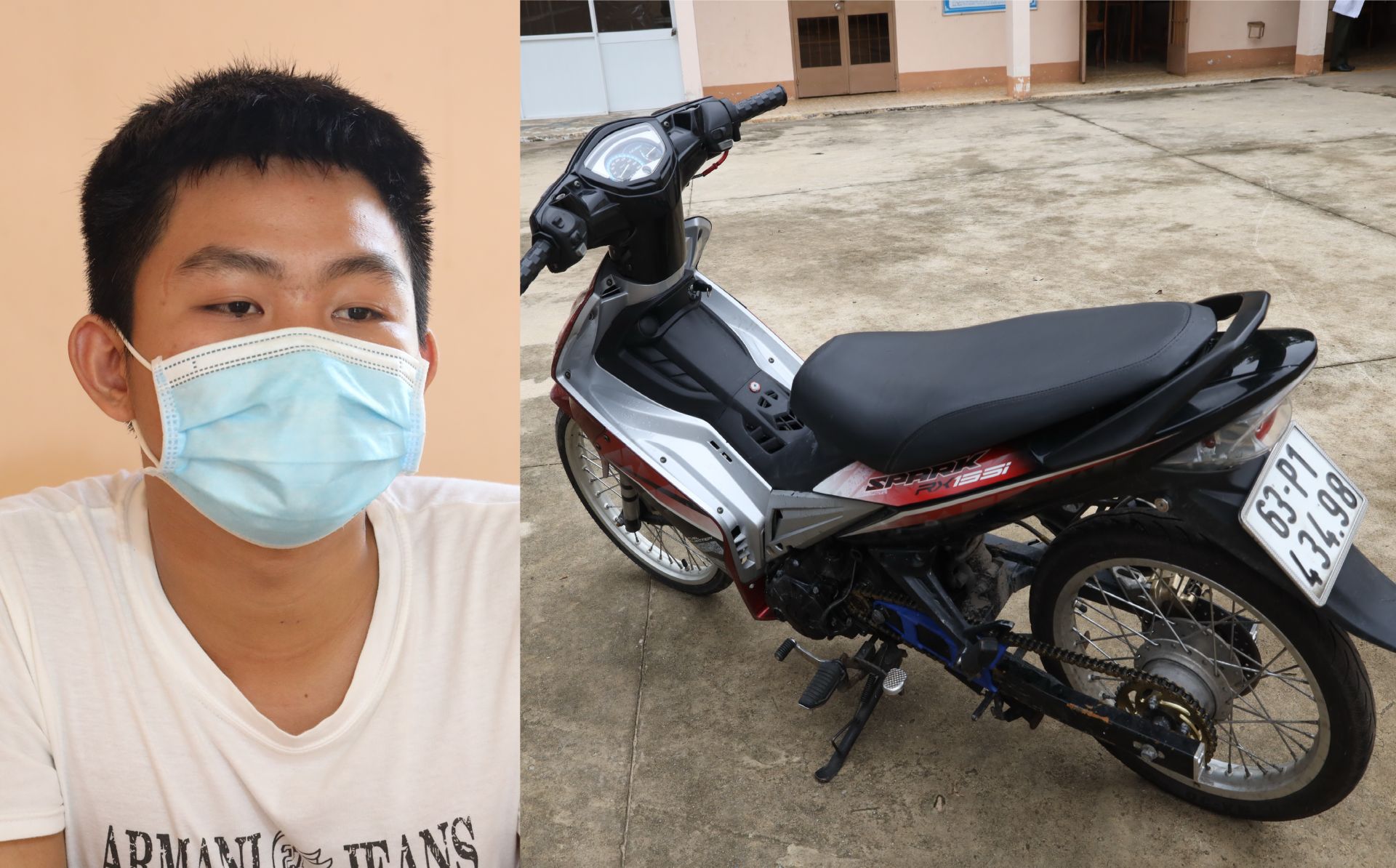 Tối ngày 5.6, Công an huyện Tân Biên bắt khẩn cấp Hiếu di lý về Tây Ninh phục vụ điều tra, đồng thời thu giữ: 1 mô tô biển số: 63B1- 434.98; 1 sợi dây chuyền vàng 18K trên 5 chỉ.