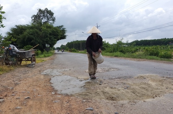 Ông Hiệp chia sẻ, vá đường bằng phương pháp thủ công như ông cũng chỉ mang tính tạm bợ và chỉ có khả năng vá những ổ gà có kích thước nhỏ, nhằm hạn chế nguy hiểm cho người đi đường. Riêng những điểm hư hỏng nặng như tại ngã ba Chà Là hay những điểm hư hỏng nặng khác thì ông Hiệp không có khả năng.