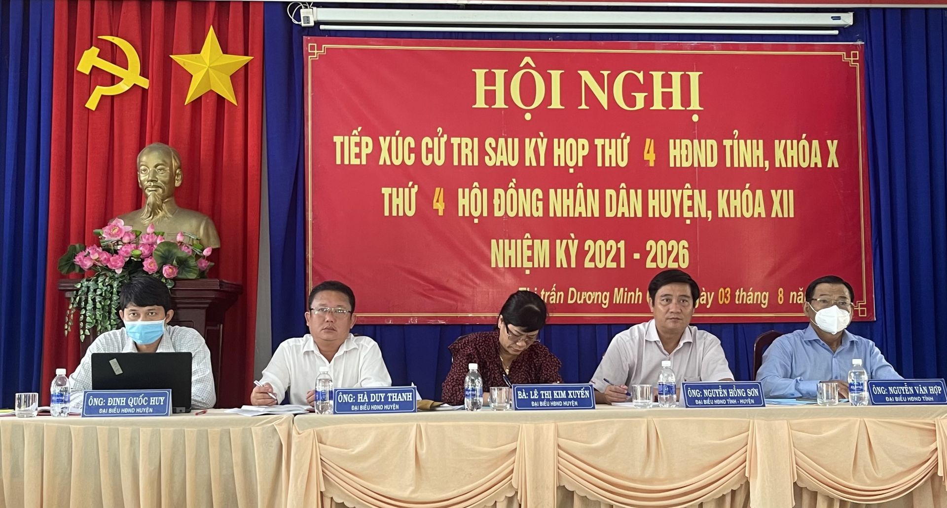 Ngày 3.8, tổ đại biểu HĐND tỉnh Tây Ninh đơn vị số 10 gồm ông Nguyễn Văn Hợp- Chủ tịch Ủy ban MTTQ Việt Nam tỉnh; ông Nguyễn Hồng Sơn- Bí thư Huyện ủy Dương Minh Châu; ông Lê Anh Tâm- Phó Giám đốc Sở Nông nghiệp và Phát triển nông thôn cùng tổ đại biểu HĐND huyện đơn vị số 1 có buổi tiếp xúc với cử tri xã Phan và thị trấn Dương Minh Châu.