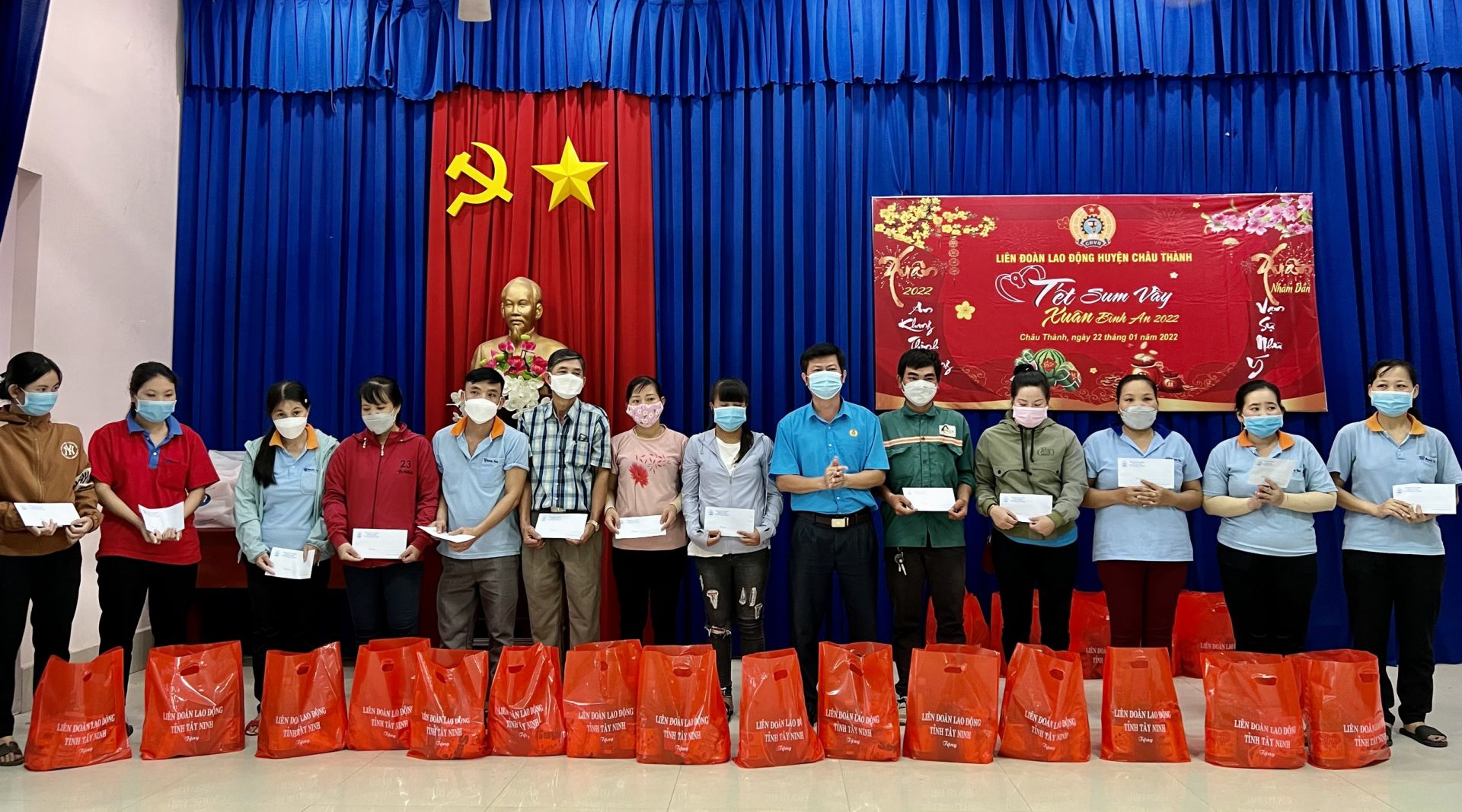 LĐLĐ tỉnh trao tặng 25 phần quà cho 25 công nhân có hoàn cảnh đặc biệt khó khăn, mỗi phần quà trị giá 1 triệu đồng. LĐLĐ huyện Châu Thành trao tặng 160 phần quà, mỗi phần quà trị giá 300 ngàn đồng cho công nhân.