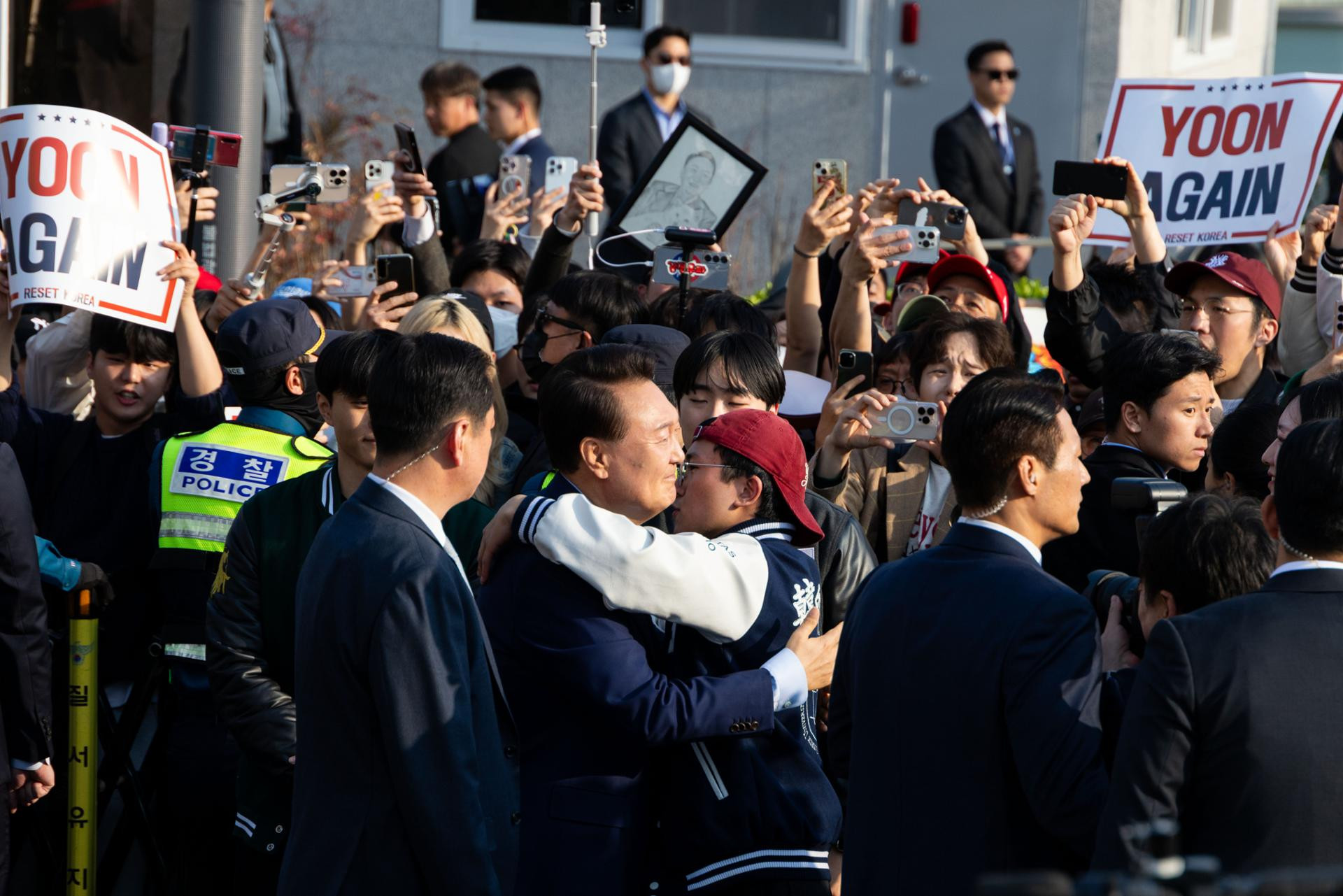 Có rất nhiều người dân đã tập trung bên ngoài dinh thự tổng thống để bày tỏ ủng hộ ông Yoon. Cựu Tổng thống Hàn Quốc thậm chí còn bắt tay và ôm cảm ơn một số người dân trước khi rời đi.