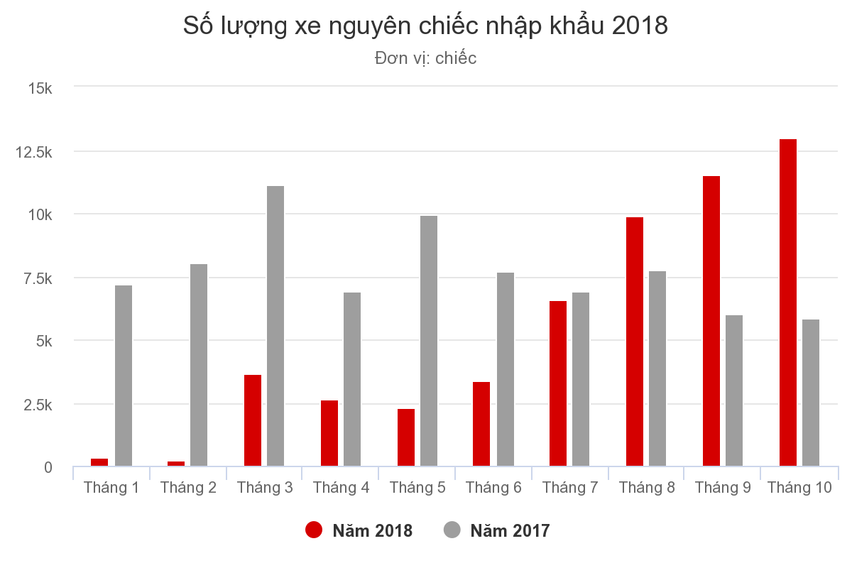 Tính đến hết tháng 10, lượng xe nhập khẩu nguyên chiếc ước tính sơ bộ đạt khoảng hơn 53.000 xe, trong khi đó cùng kỳ năm ngoái số lượng xe nhập đạt hơn 77.000 chiếc. Tuy nhiên, xe nhập khẩu chỉ bắt đầu về đều đặn từ tháng 8 năm nay, sau hơn nửa năm tắc nghẽn.