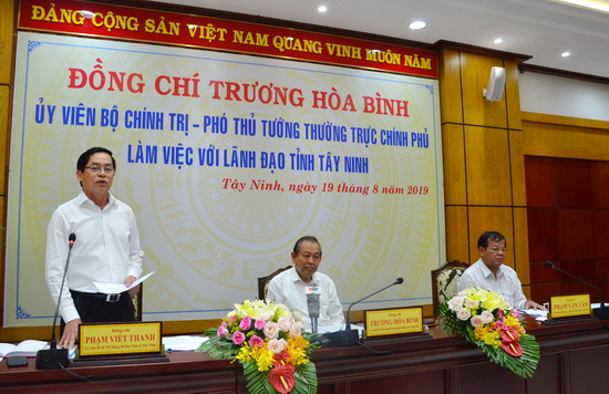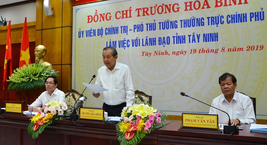 Sáng 19.8, Đoàn công tác Chính phủ do Ủy viên Bộ Chính trị, Phó Thủ tướng Thường trực Chính phủ Trương Hòa Bình làm Trưởng đoàn đã có buổi làm việc với tỉnh Tây Ninh về kết quả thực hiện “Năm dân vận chính quyền” 2019, công tác tiếp công dân, giải quyết khiếu nại tố cáo; tình hình kinh tế - xã hội, quốc phòng - an ninh 6 tháng đầu năm 2019.