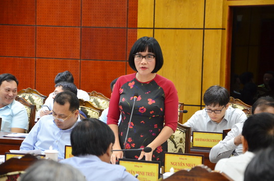 Thứ trưởng Bộ Tư pháp Đặng Hoàng Oanh đóng góp ý kiến tại buổi làm việc.