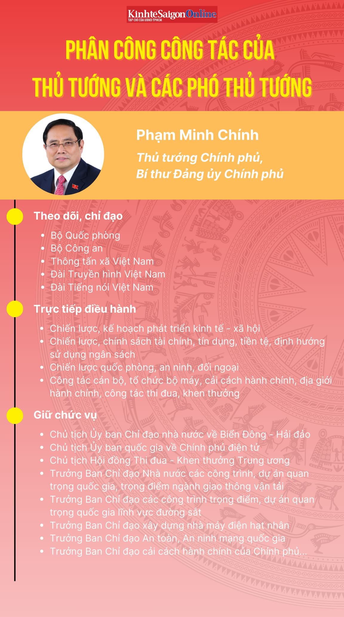 Thủ tướng Phạm Minh Chính vừa ký Quyết định số 401/QĐ-TTg ngày 25-2-2025 về phân công công tác của Thủ tướng và các phó thủ tướng. Trong đó, Thủ tướng trực tiếp chỉ đạo các lĩnh vực phát triển kinh tế - xã hội; tài chính, tín dụng, tiền tệ; quốc phòng, an ninh, đối ngoại; công tác cán bộ, tổ chức bộ máy...