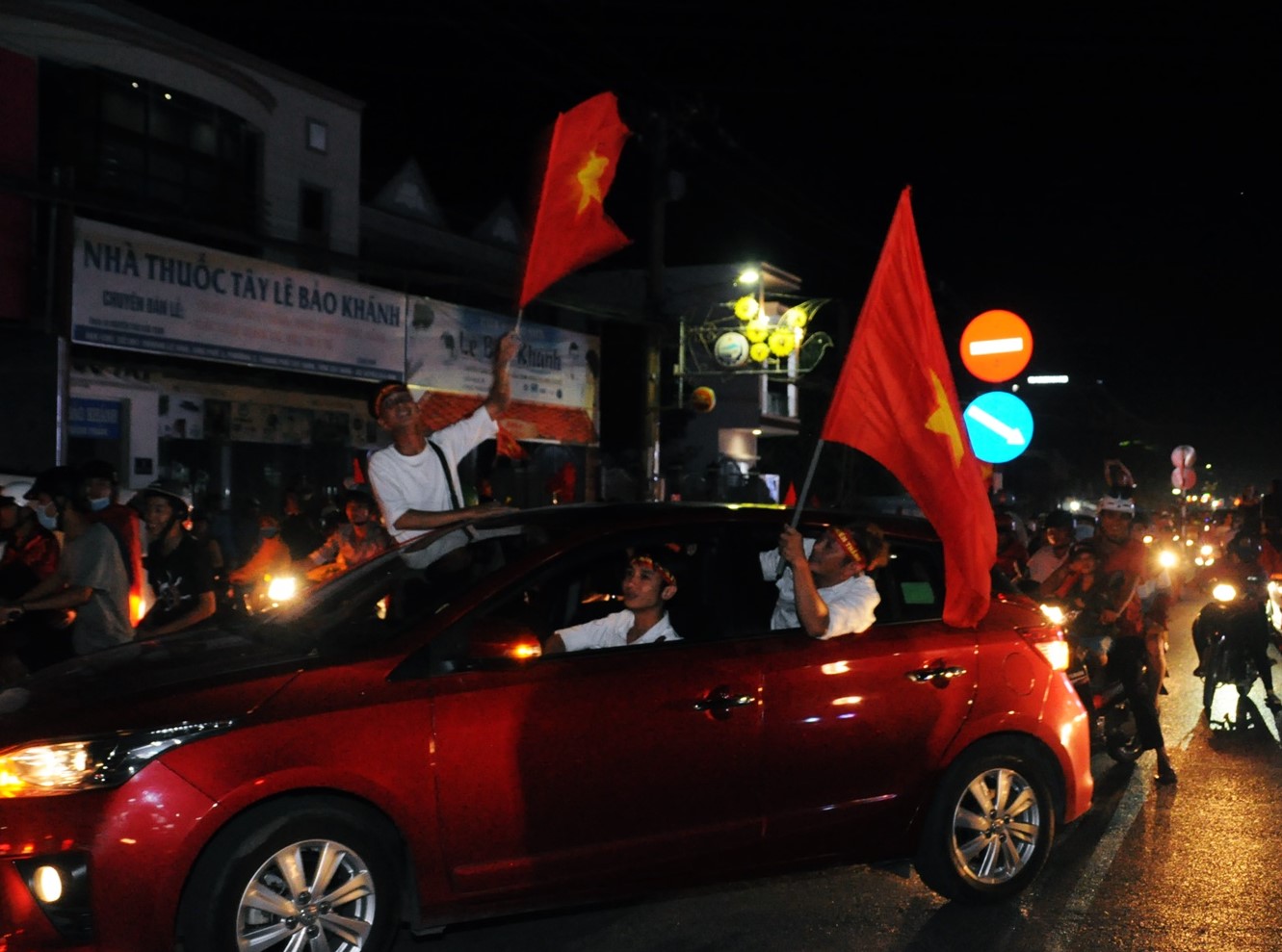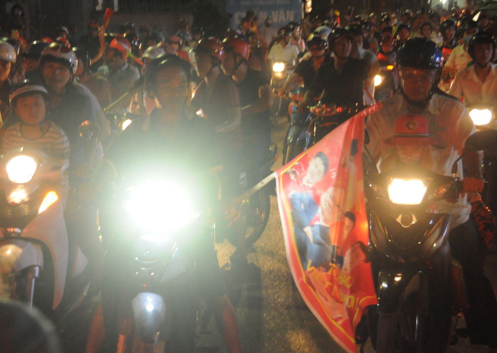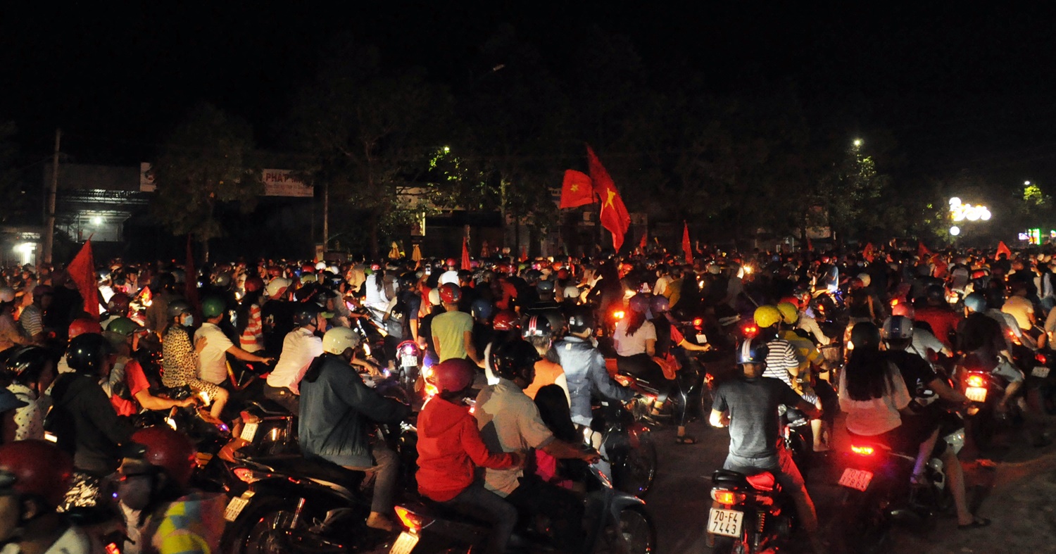 Ngay khi tiếng còi kết thúc trận đấu giữa Việt Nam - Phillippines vang lên, hàng ngàn người dân Tây Ninh đổ ra đường ăn mừng chiến thắng của đội nhà.
