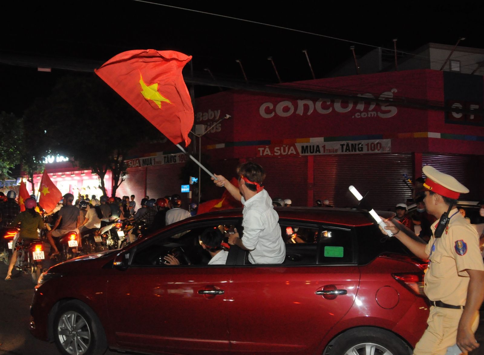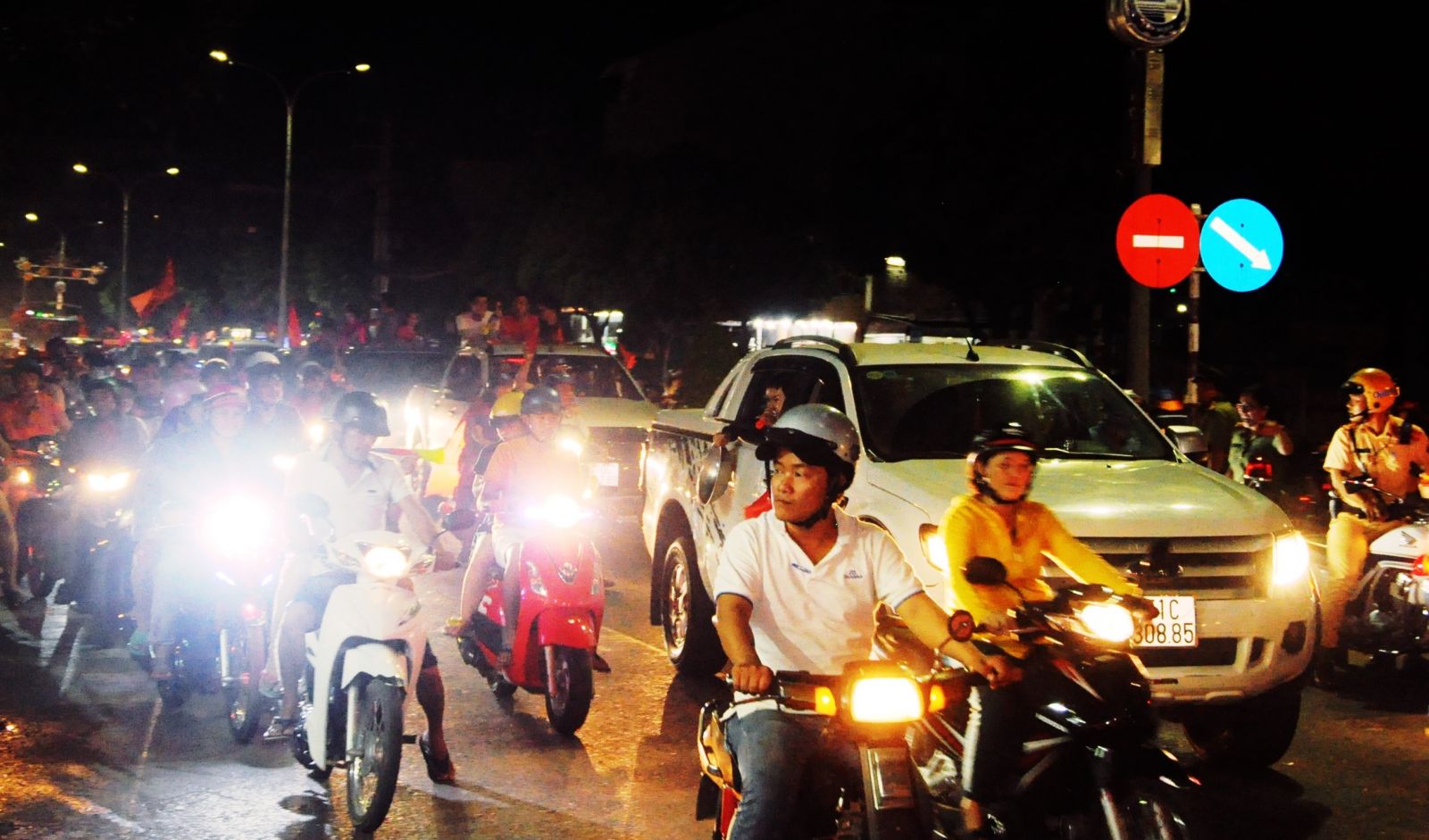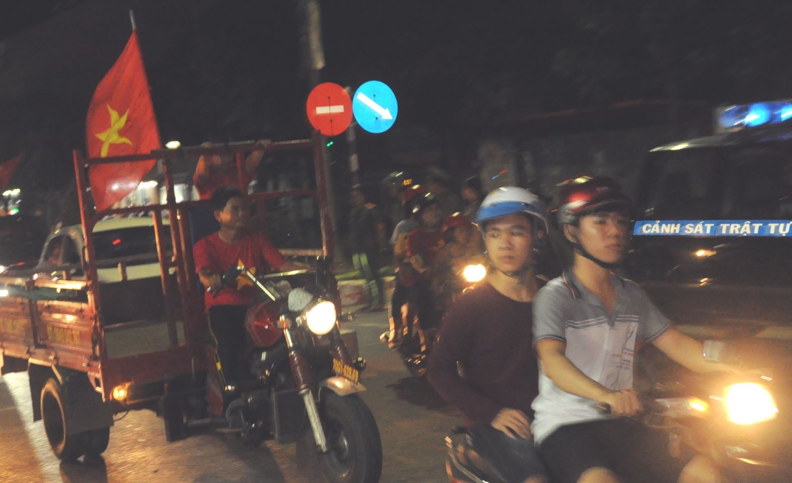 Ngay khi tiếng còi kết thúc trận đấu giữa Việt Nam - Phillippines vang lên, hàng ngàn người dân Tây Ninh đổ ra đường ăn mừng chiến thắng của đội nhà.