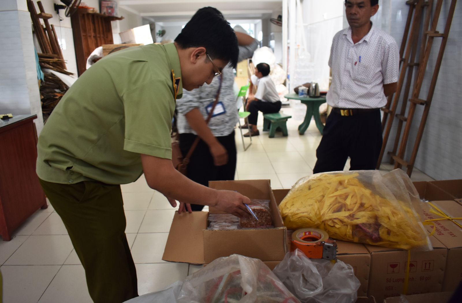 Tại đây, lực lượng chức năng phát hiện 1.800 bịch kẹo đậu phộng, kẹo hạt điều ghi ngày sản xuất và hạn sử dụng không đúng với thực tế từ 4- 11 ngày và đã lập biên bản tạm giữ số hàng hóa trên.