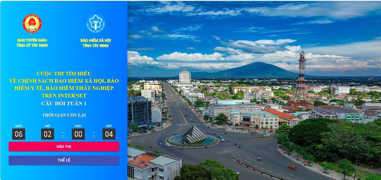 Cuộc thi sẽ diễn ra hằng tuần, bắt đầu từ ngày 02/10/2023 đến hết ngày 22/10/2023 tại trang Web chính thức của Cuộc thi https://thitimhieuchinhsachbhxhbhyt.tayninh.gov.vn.