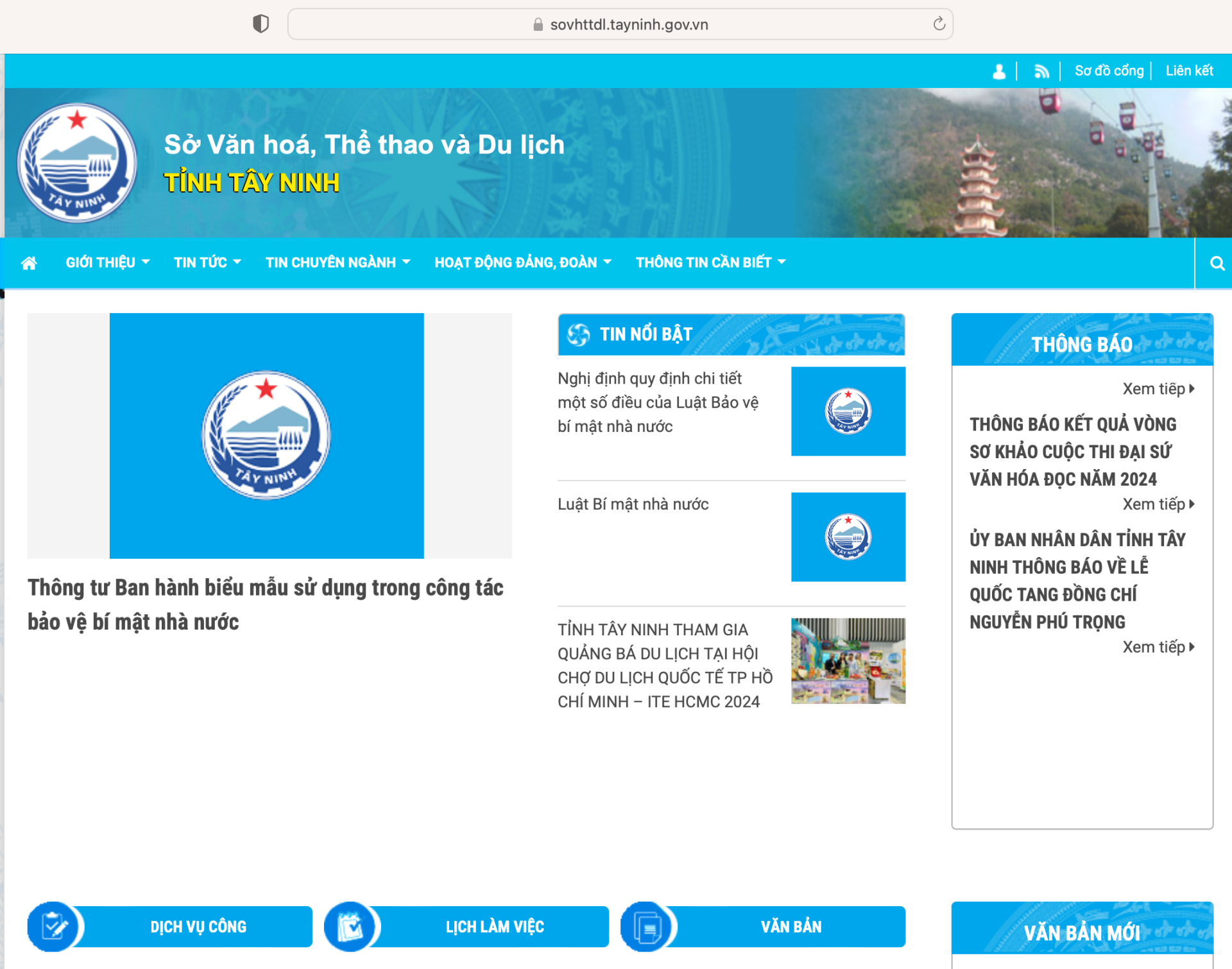 Giao diện website của Sở Văn hoá, Thể thao và Du lịch Tây Ninh.