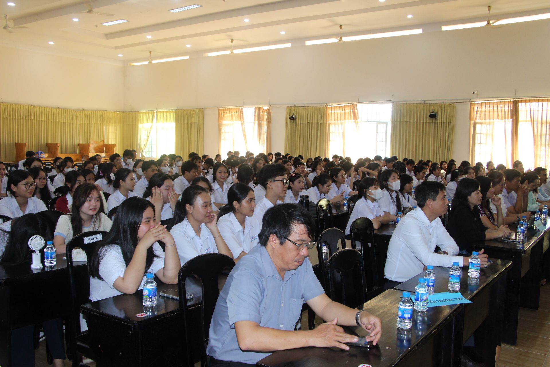 Lãnh đạo các sở, ngành và học sinh tham dự lễ phát động tại điểm cầu Tây Ninh.