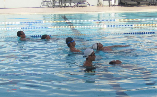 Các nhân viên cứu đuối tại các bể bơi thực hành cứu người bị đuối.