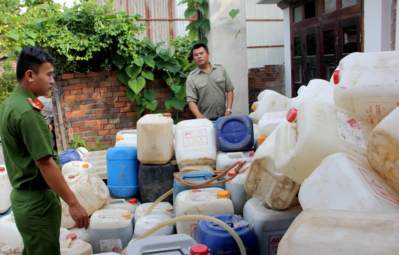Tại thời điểm kiểm tra, đoàn kiểm tra phát hiện 2 cơ sở trên có khoảng 9 ngàn lít nước mắm đựng trong các can nhựa không có nhãn mác, tên cơ sở, không đảm bảo vệ sinh; 600 kg muối hột, nhiều thùng chứa dung dịch caramel color và hydrochloric acid; 1.200 tờ nhãn hàng hóa chưa sử dụng và nhiều dụng cụ khác có liên quan đến sản xuất nước mắm.
