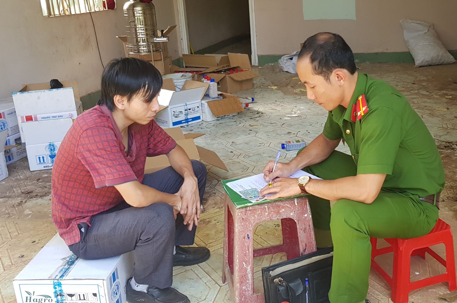 Tang vật, phương tiện tại điểm sang chiết thuốc bảo vệ thực vật.