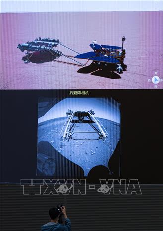 Hình ảnh tàu thăm dò Sao Hỏa Chúc Dung đáp xuống bề mặt Sao Hỏa ngày 22-5-2021. Ảnh: THX/TTXVN