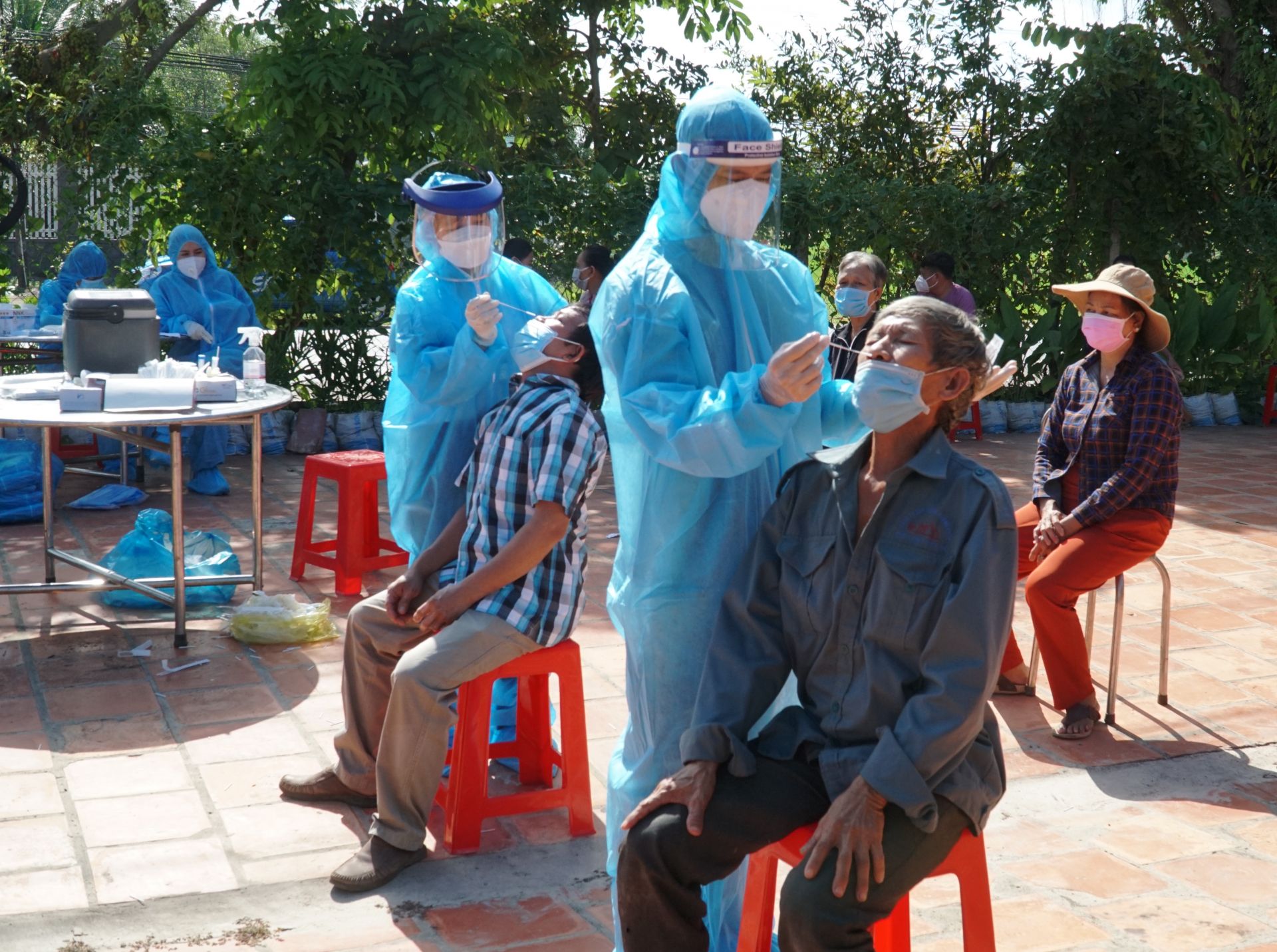 Nhân viên y tế lấy mẫu xét nghiệm người dân ở xã Trà Vong.