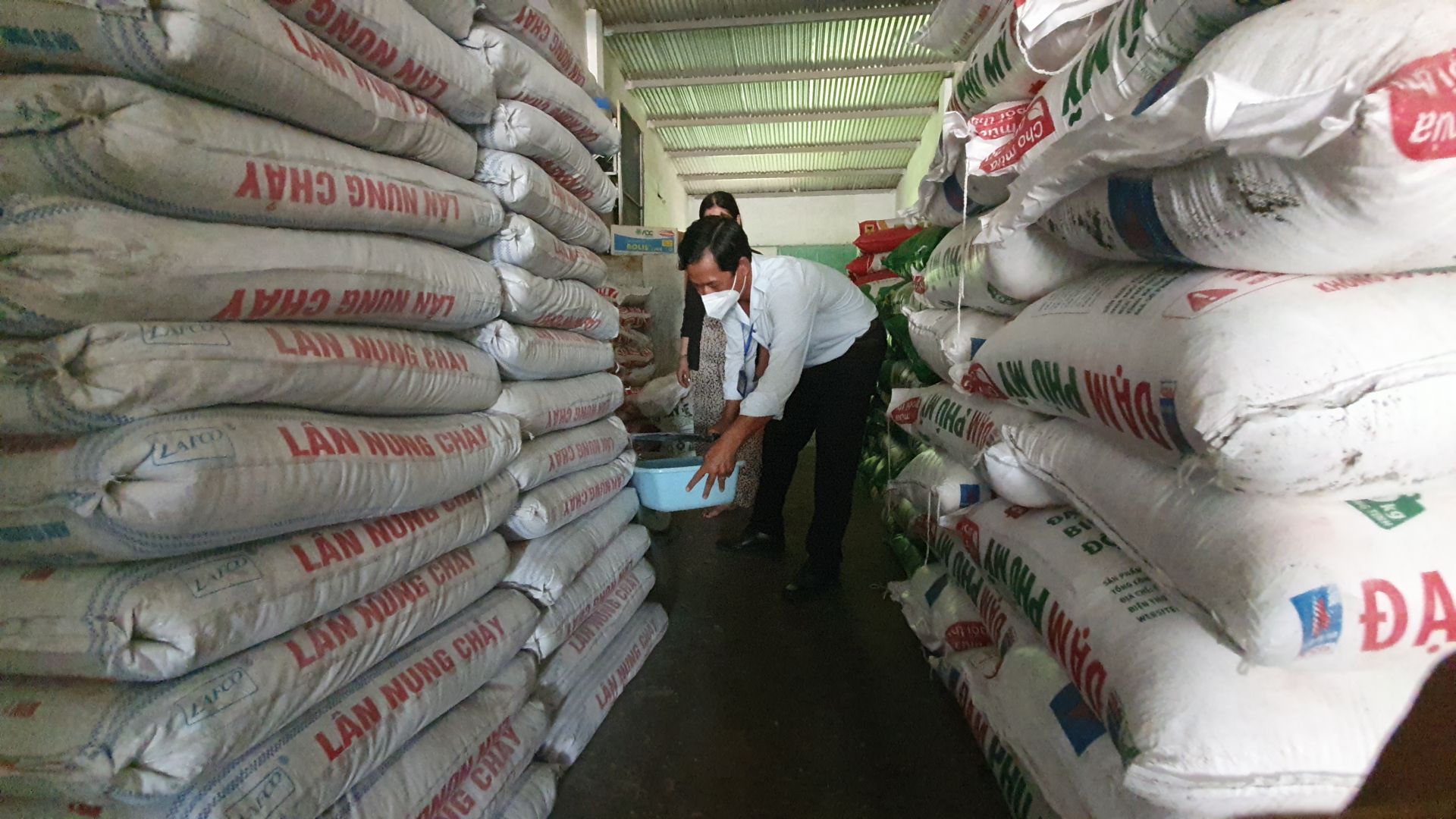 Thanh tra Sở NN&PTNT lấy mẫu phân bón tại một cơ sở kinh doanh.