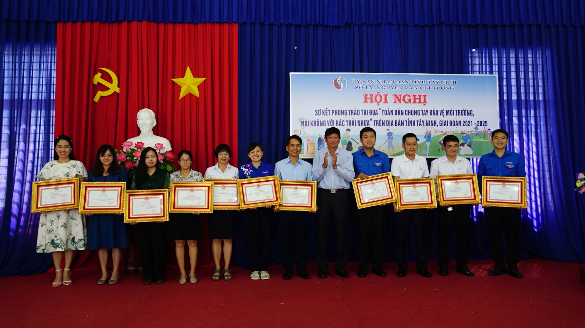 Ông Trần Minh Sơn – Phó Giám đốc Sở Tài nguyên và Môi trường tặng bằng khen của UBND tỉnh cho các cá nhân có thành tích xuất sắc trong Phong trào thi đua “Toàn dân chung tay bảo vệ môi trường, nói không với rác thải nhựa” giai đoạn 2021-2023.