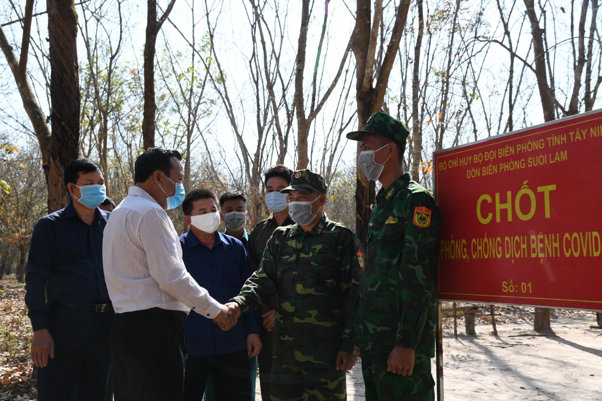 Ông Phạm Hùng Thái - Phó Bí Thư Thường trực Tỉnh uỷ Tây Ninh thăm hỏi động viên các chiến sỹ đang thực hiện nhiệm vụ tại điểm chốt dã chiến số 1 thuộc Đồn biên phòng Suối Lam.