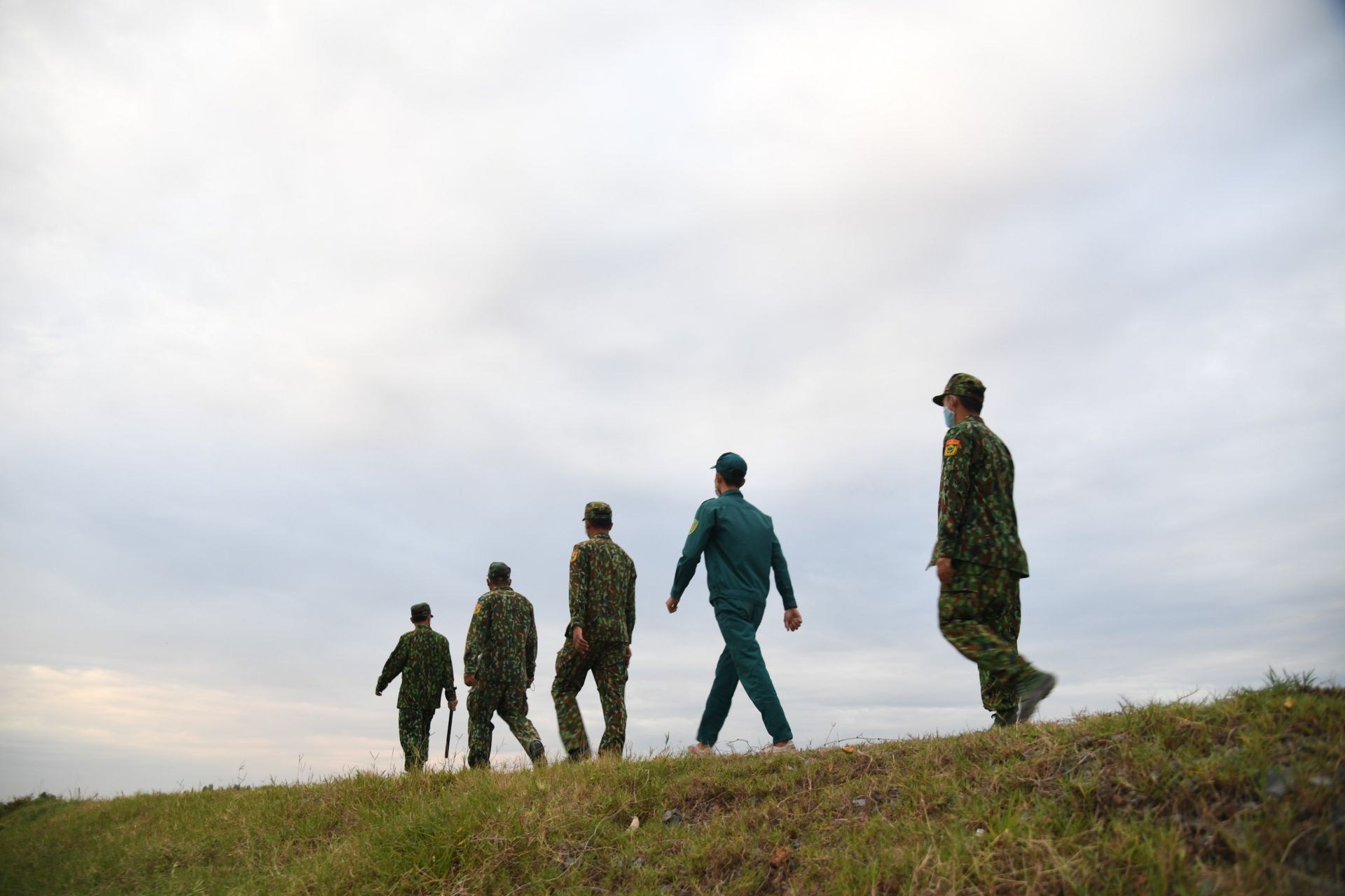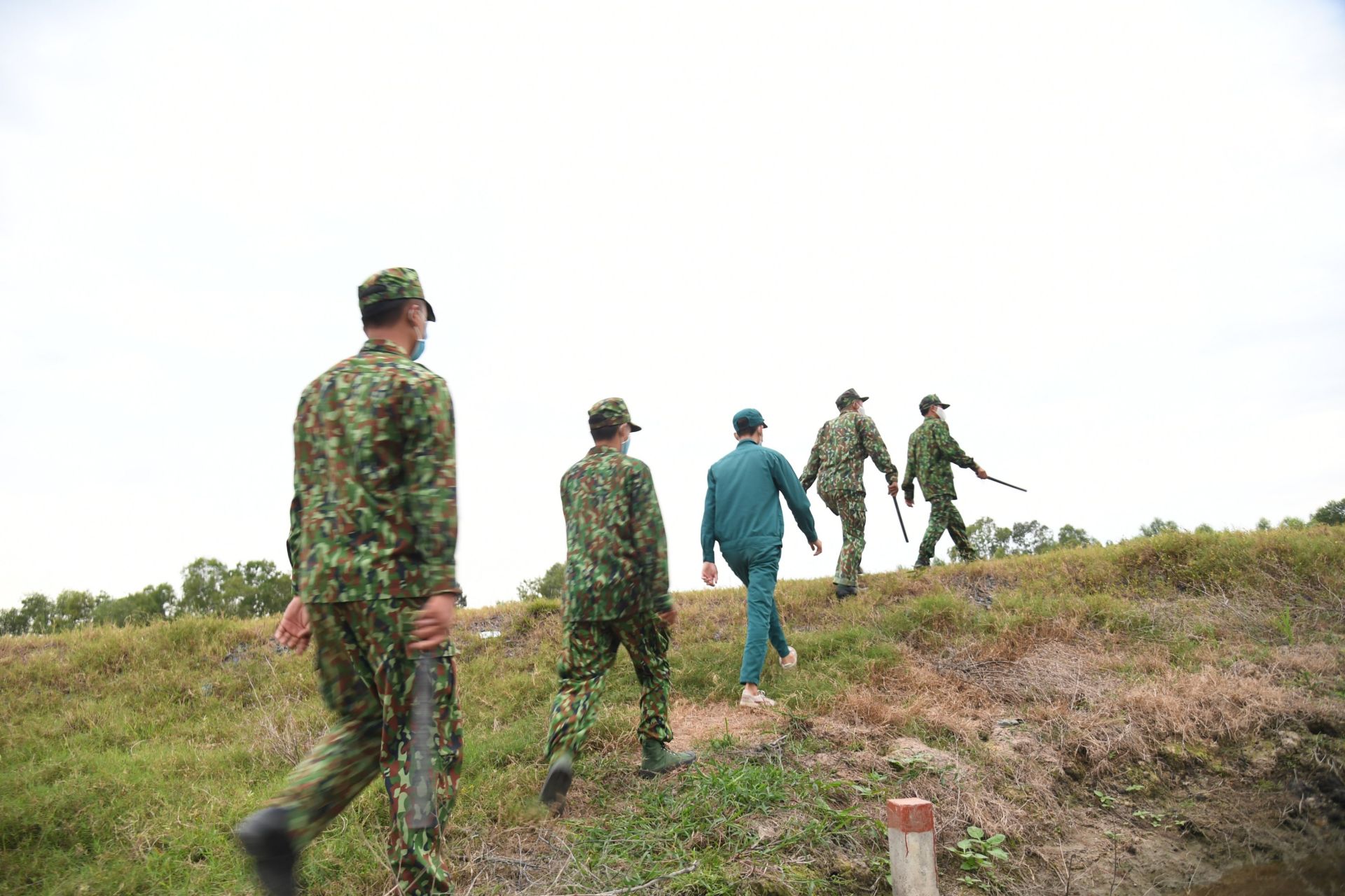 Cán bộ chiến sỹ Đồn biên phòng Phước Tân và Hội Cựu chiến binh xã Thành Long tuần tra bảo vệ hệ thống đường biên cột mốc.