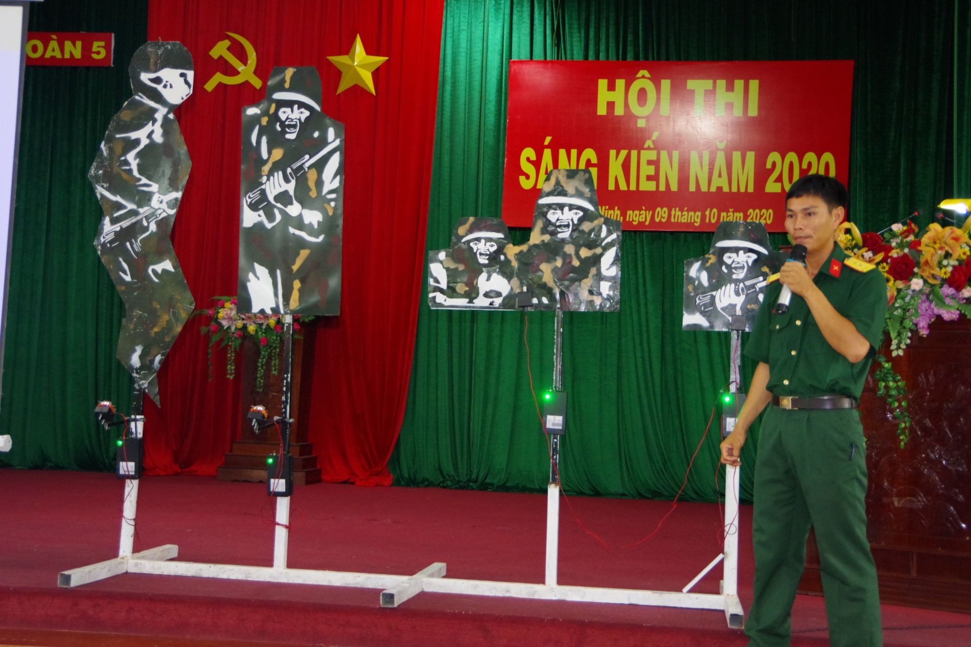 Đại uý Nguyễn Văn Khơn tham gia hội thi sáng kiến cấp sư đoàn.