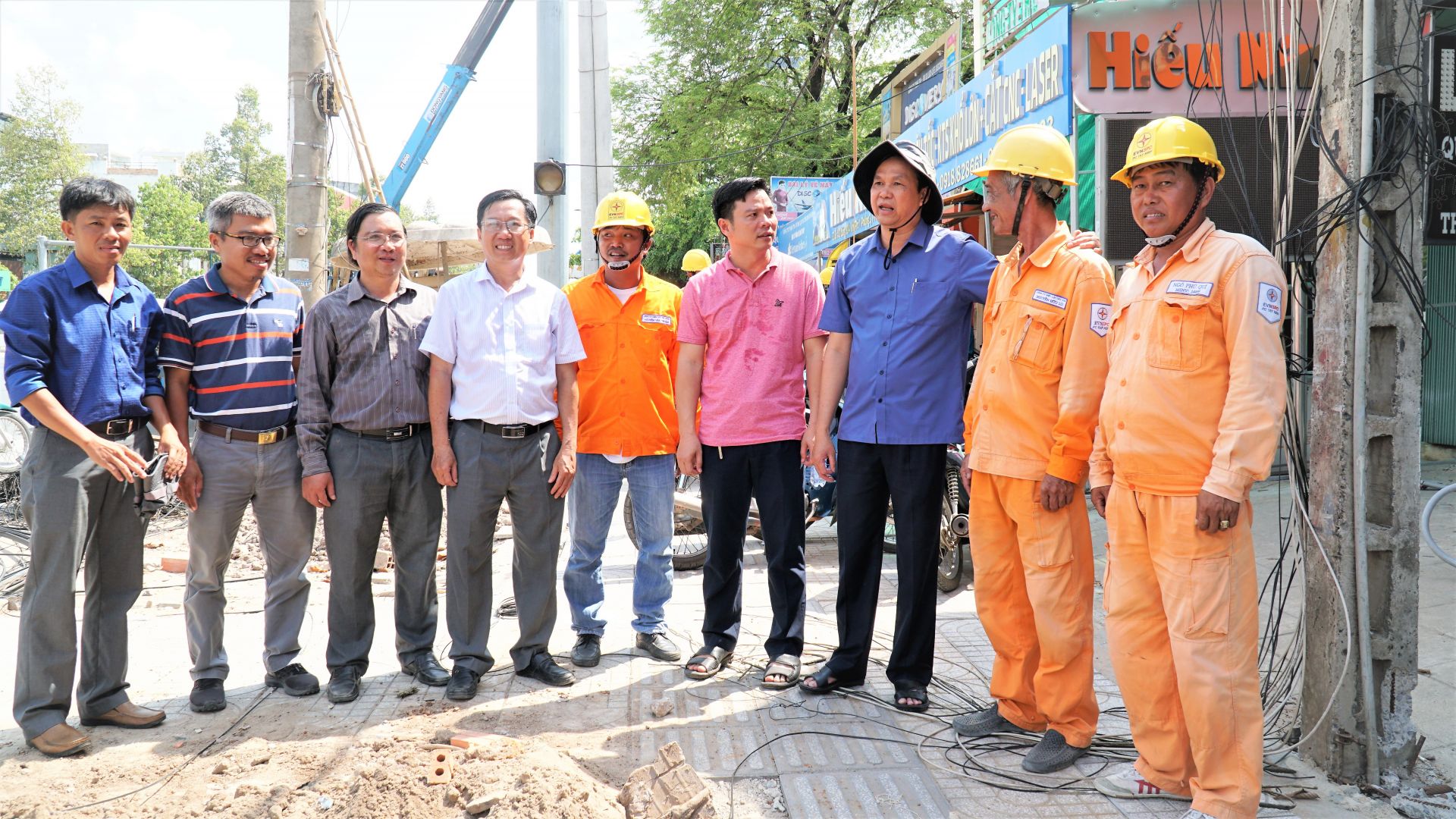 Phó chủ tịch UBND tỉnh Dương Văn Thắng thăm, động viên công nhân trên công trường- Ảnh Hồng Thắm
