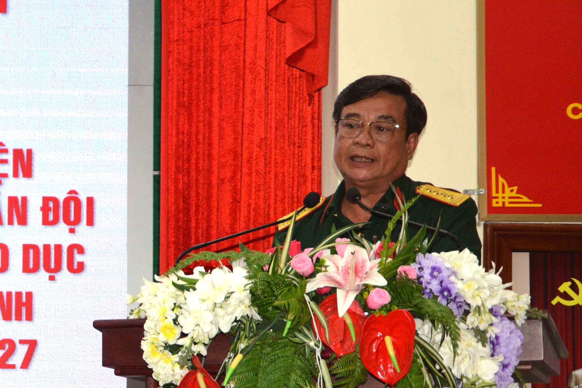 Đại tá Đỗ Thành Việt- Phó Chính ủy Bộ CHQS tỉnh phát biểu gợi ý thảo luận.
